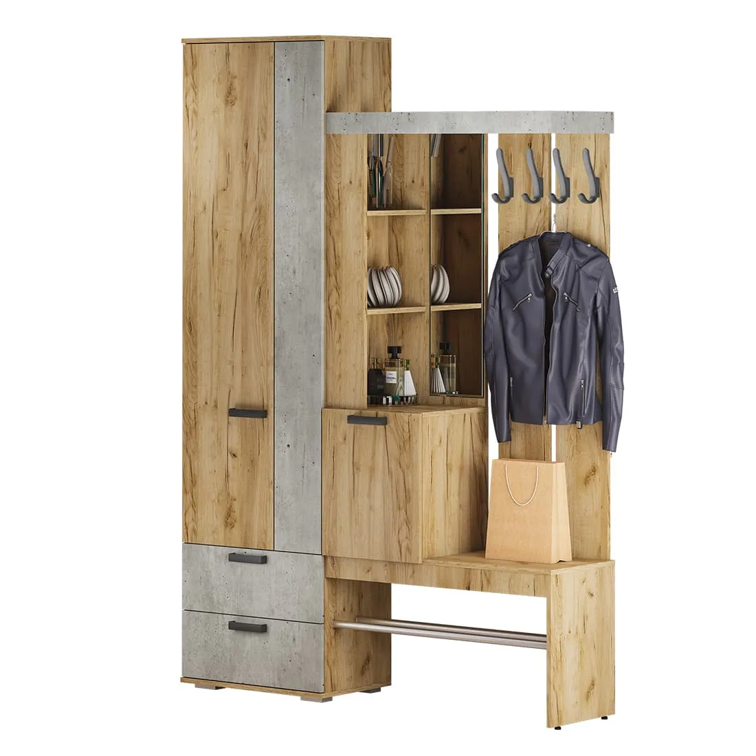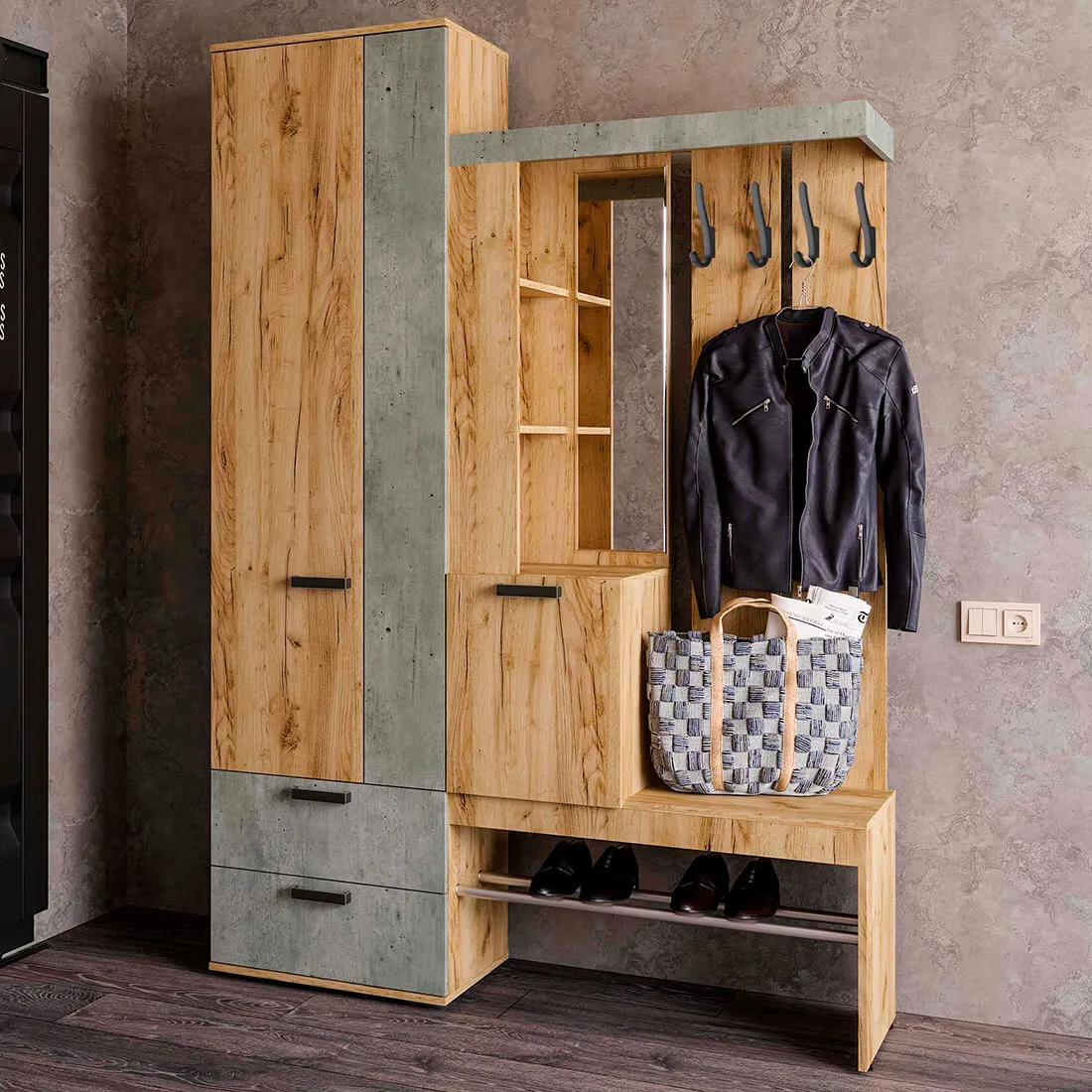 Идеальный выбор для современного интерьера, особенно в стиле "лофт", – это прихожая "Трамп". Модель выполнена из ЛДСП двух цветов – "крафт" и "бетон",