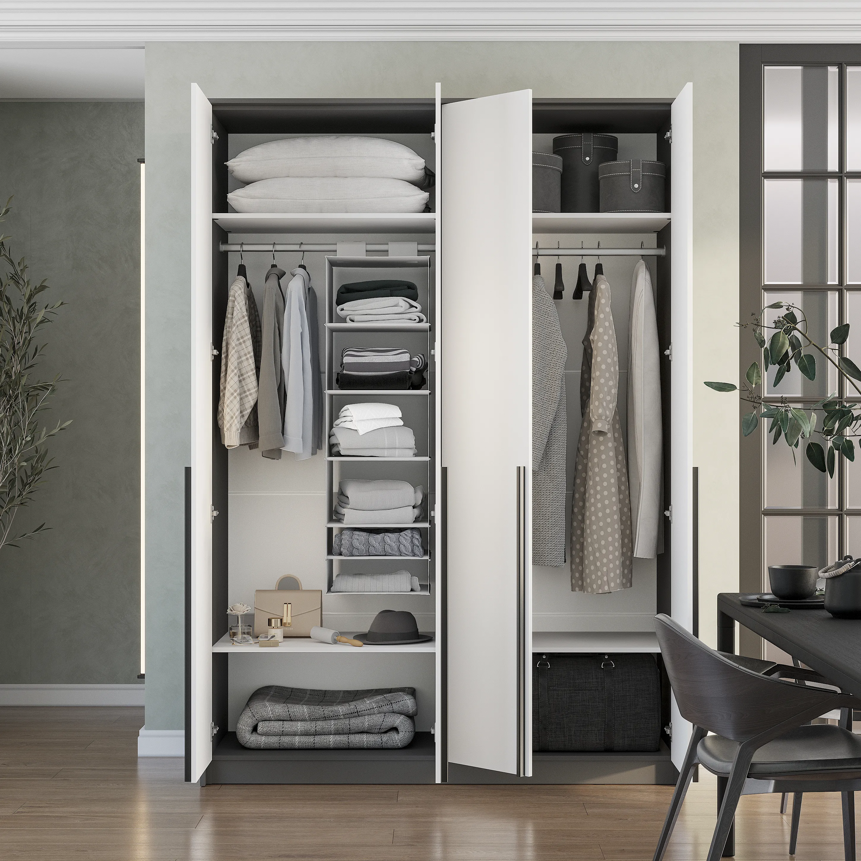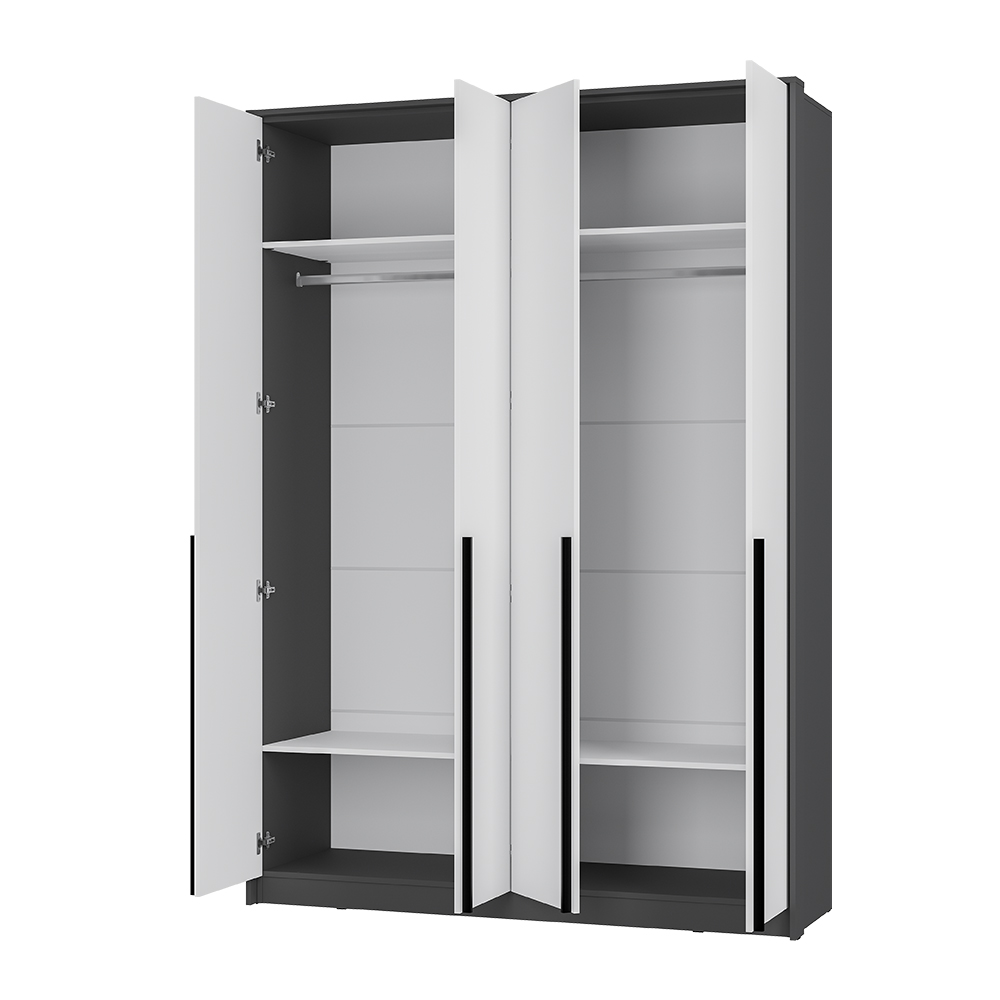 Коллекция "Шарм" - современная классика в контрастном исполнении "белый/графит". Шкаф обретает массивность благодаря монолитному ЛДСП - порталу, дополнен вертикальными черными ручками и надежными петлями с доводчиками. Дополнительно комплектуется полками ПЛ-08 белый.