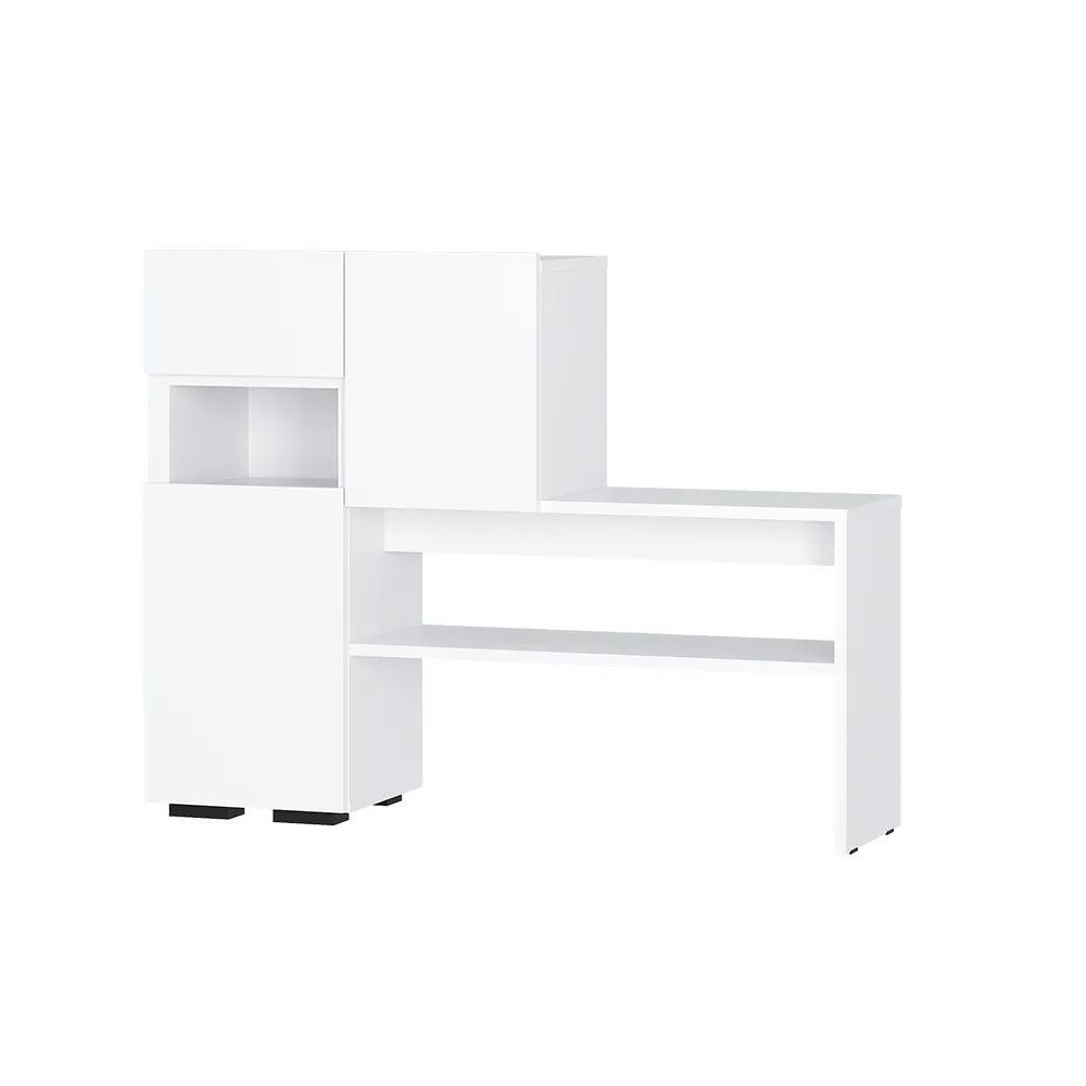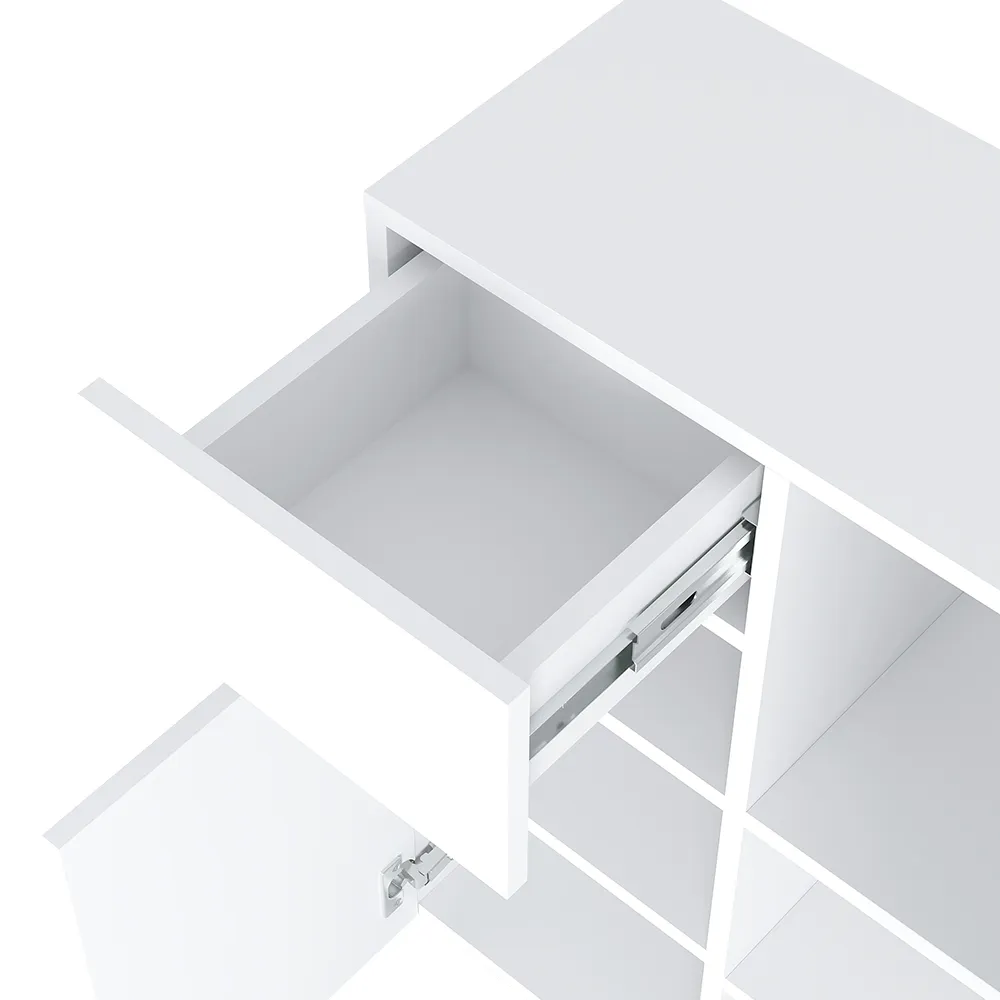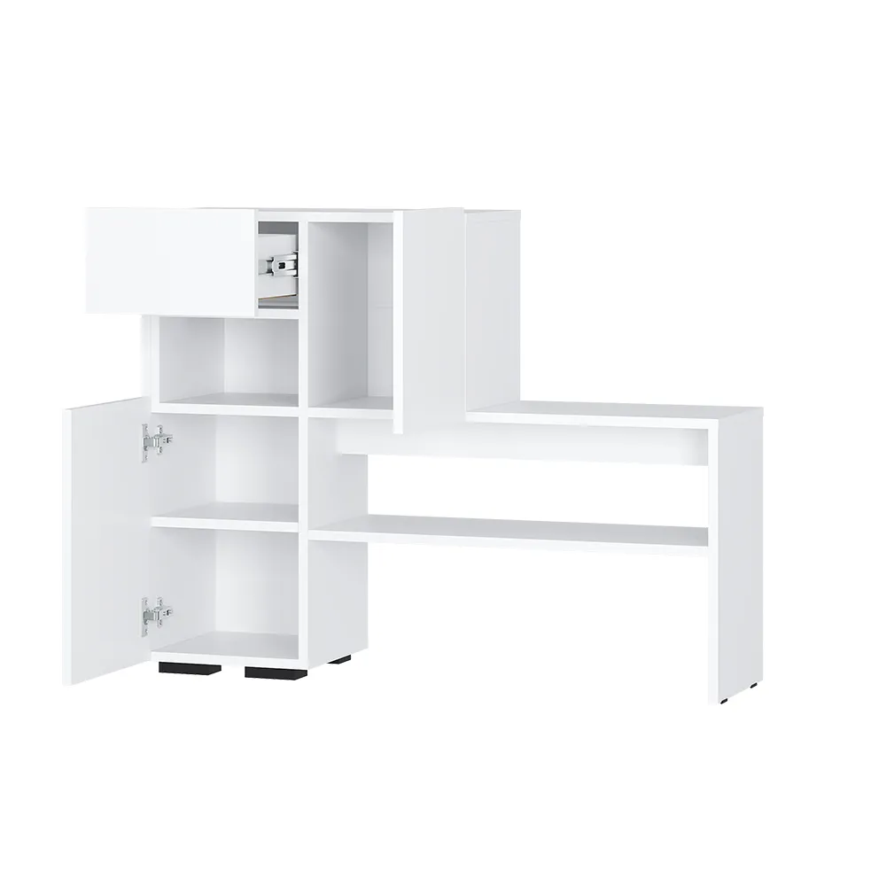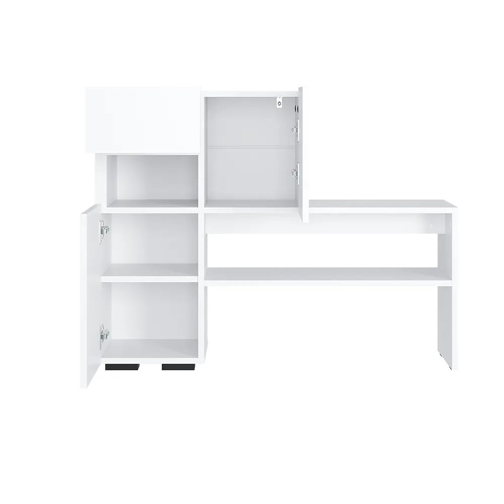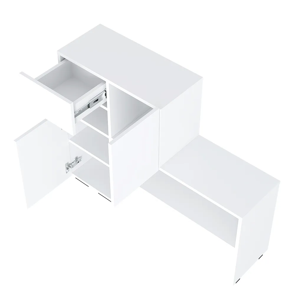 Обувная полка имеет открытые и закрытые пространства. Это позволяет системно размещать все нужные предметы. А выдвижной ящик создает необходимое скрытое место для складирования мелочей.