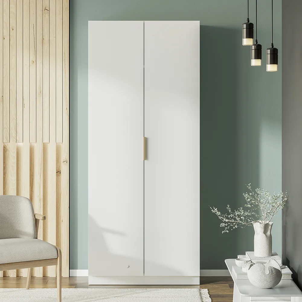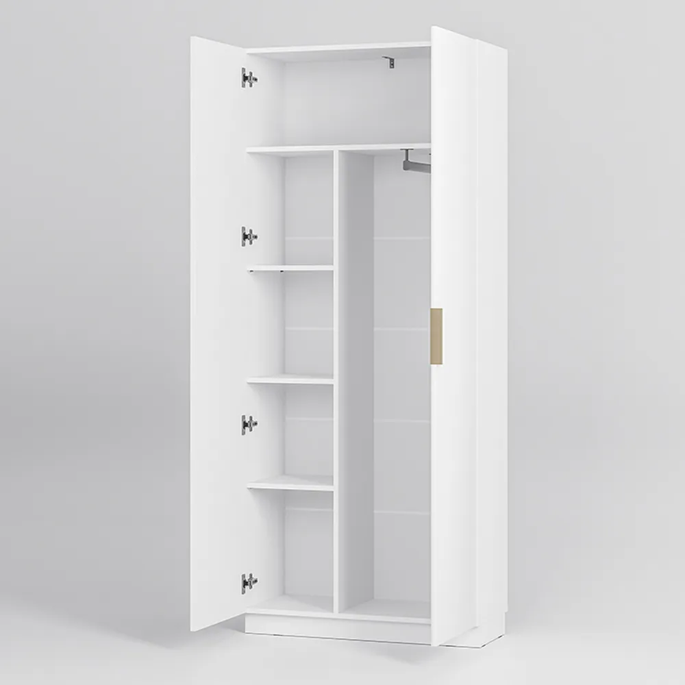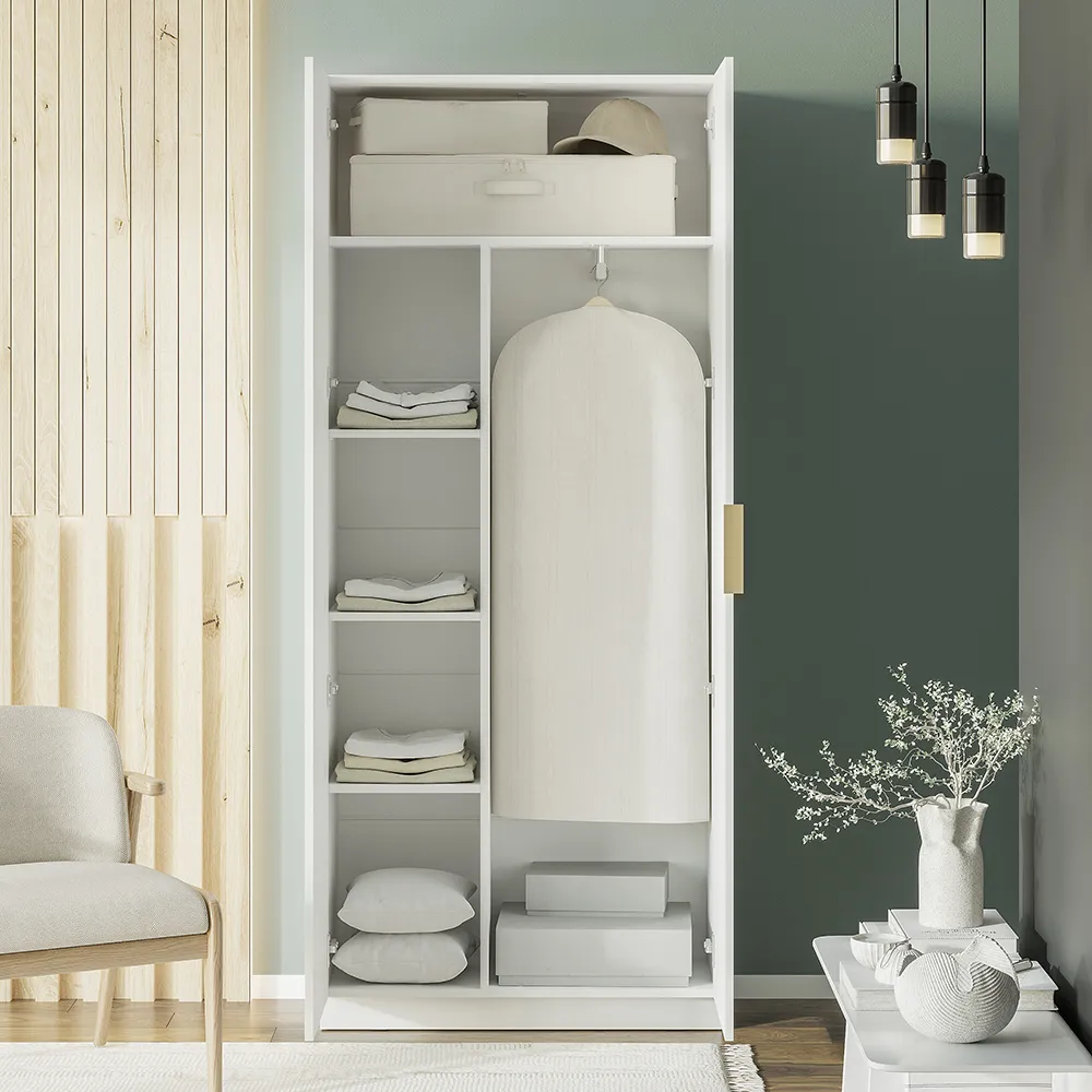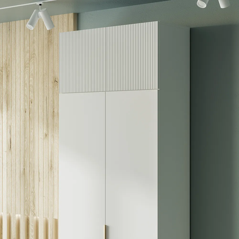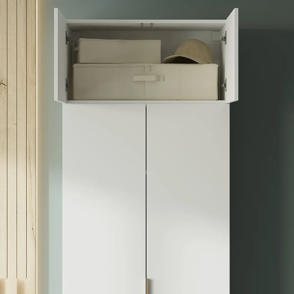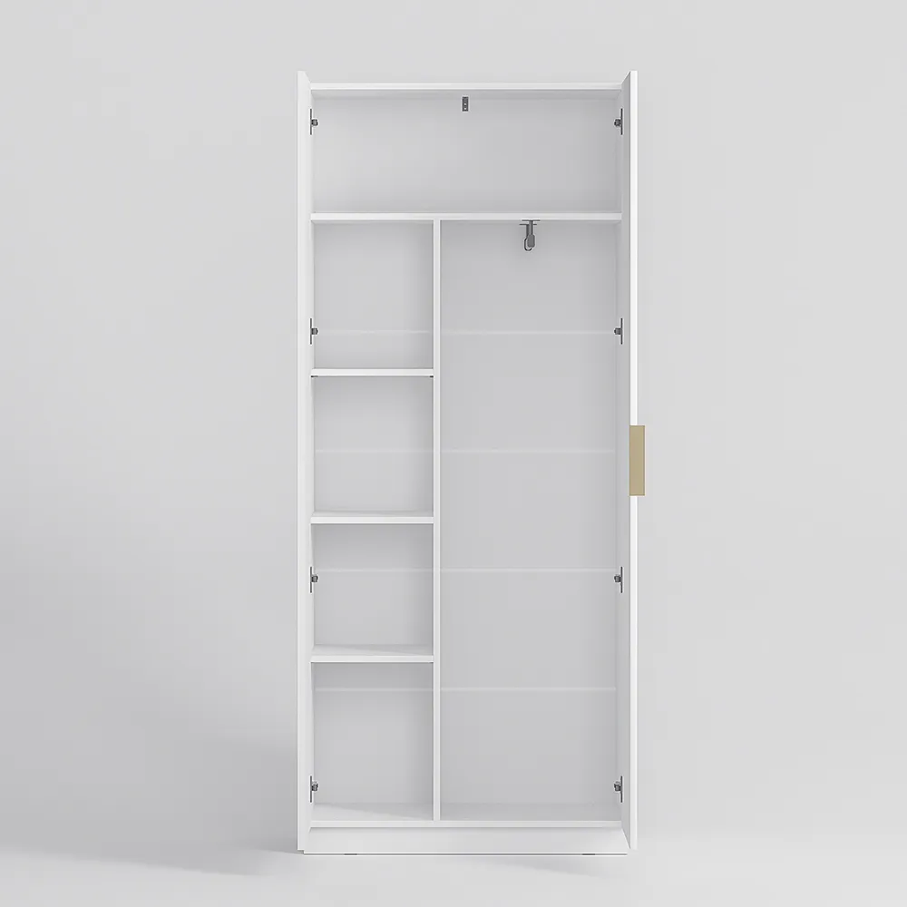 Место внутри шкафа легко структурировать. Комфортный доступ к верхней одежде обеспечит 2-х створчатое платяное отделение с вешалкой со штангой.