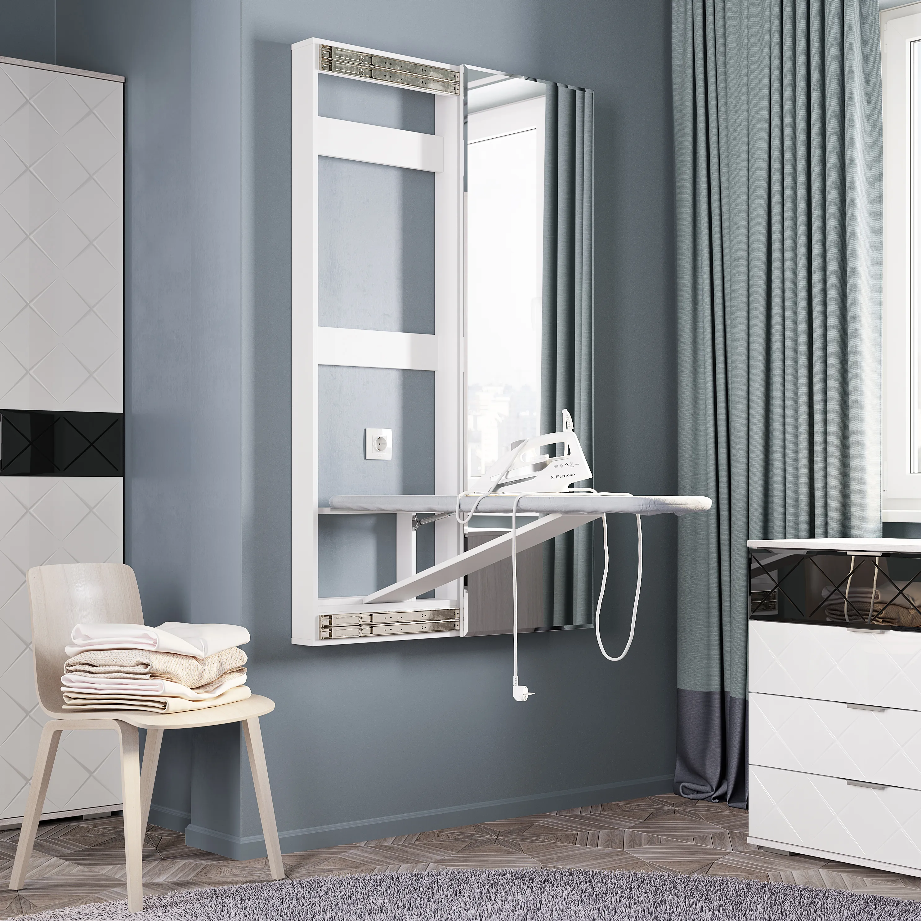 Гладильная доска-купе "Смарт" — бесценная находка для тех, кто стремится максимально рационализировать пространство. Она крепится к стене, что делает эксплуатацию особенно удобной. После глажки вы легко скроете доску за дверцей, превратив всю конструкцию в декоративный элемент интерьера. Преимущества: