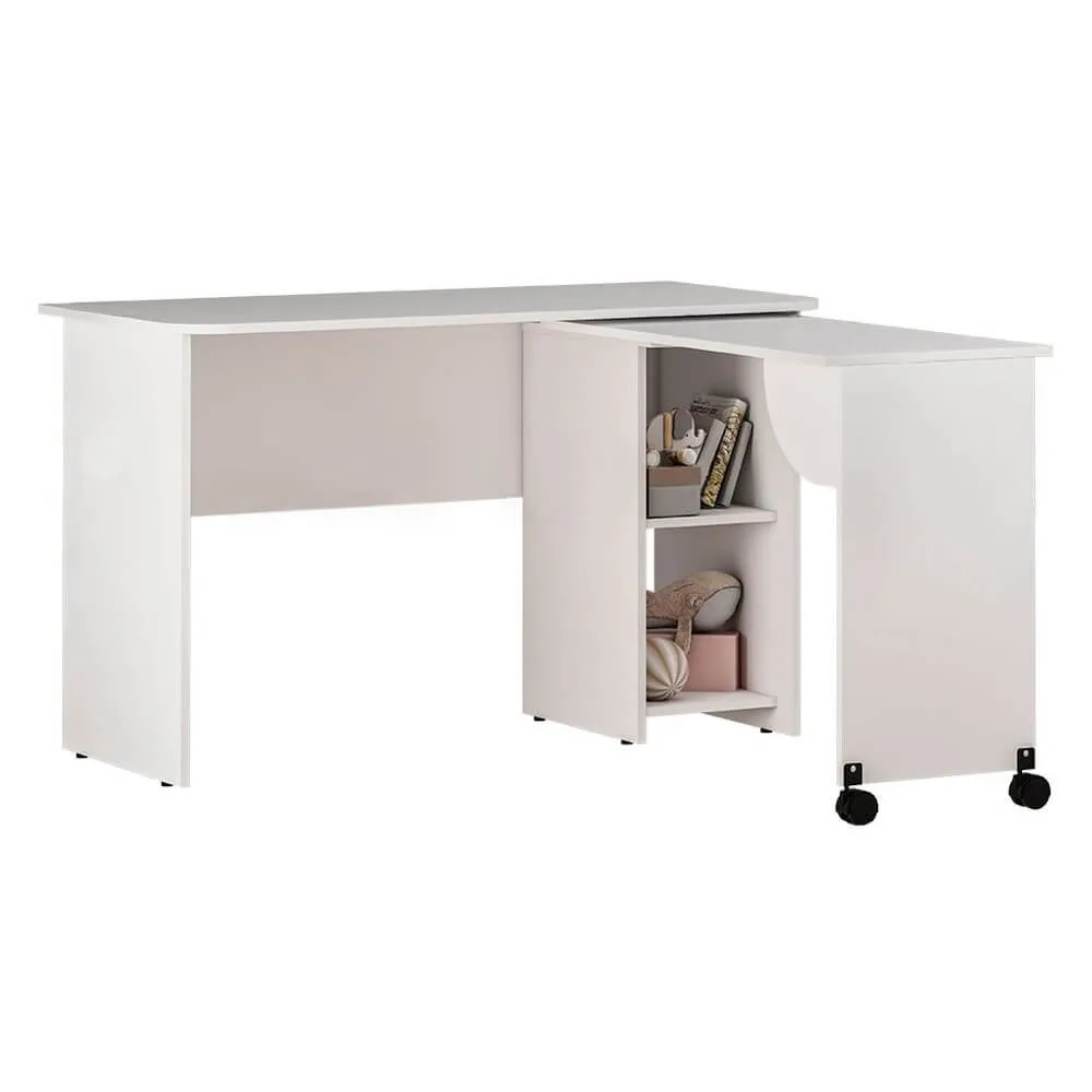 Очень практичная модель подойдет как для детской комнаты, так и для кабинета или офиса. Особенностью стола является раздвижная столешница, которая создает дополнительную рабочую поверхность. В двух открытых нишах можно хранить необходимые предметы или канцелярию. Белый цвет изделия позволит ему расположиться в любом интерьере.