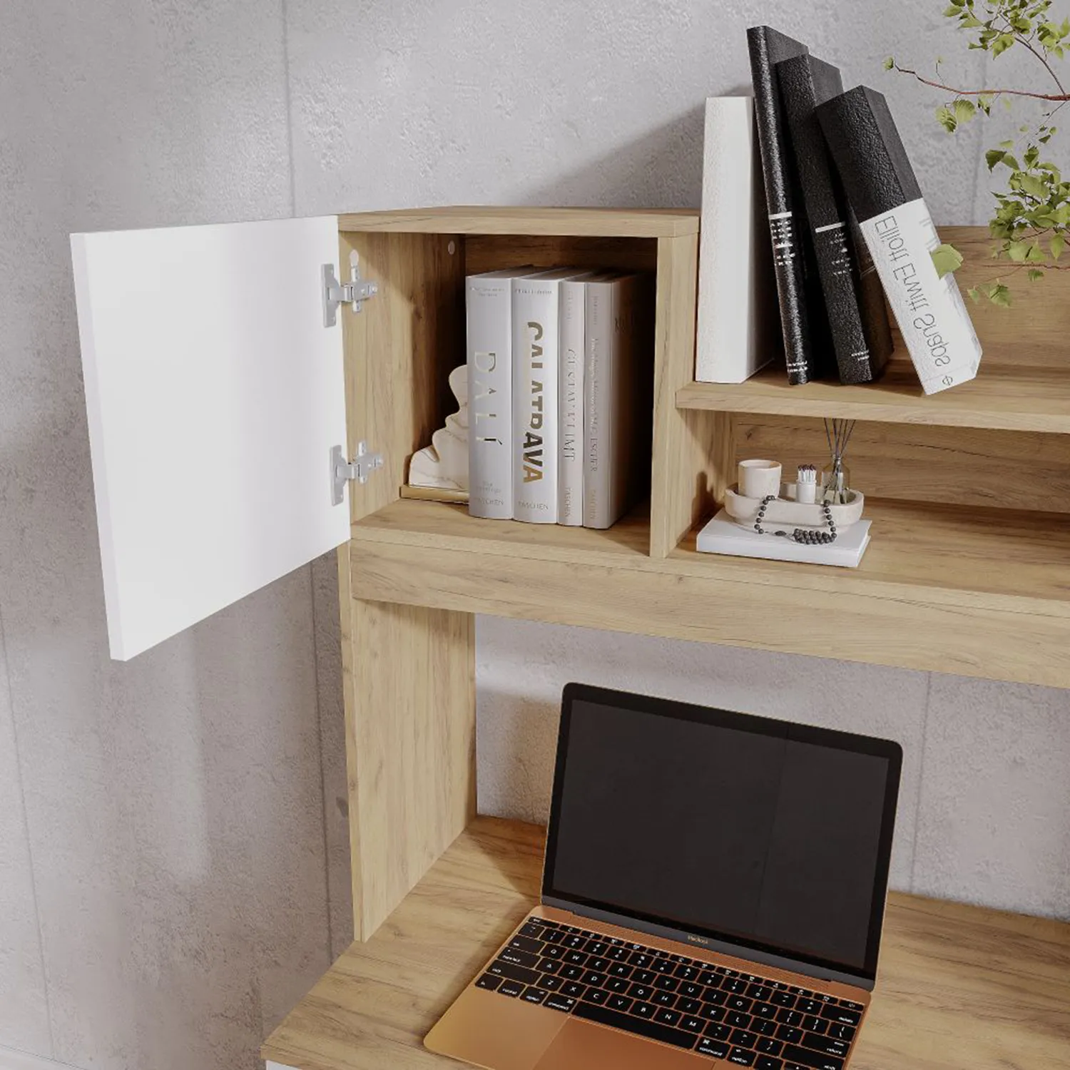Стильный письменный стол "Селфи" станет украшением любого рабочего пространства. Модель выполнена в цвете "крафт" в гармоничном сочетании с белым. В выдвижных ящиках и нишах над столешницей получится разместить все необходимые для работы или учебы вещи.