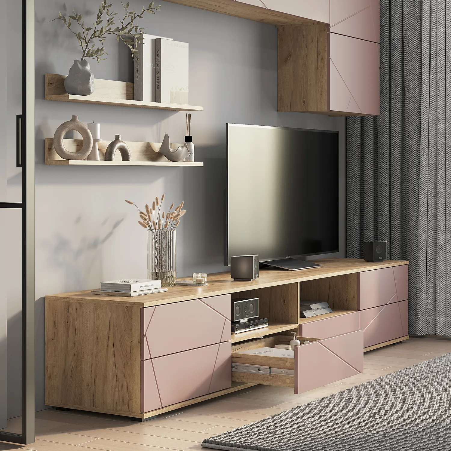 Создайте уютную атмосферу для вашего дома с помощью стенки под телевизор для зала. Комплект горки отлично подходит как для гостиных, так и для других комнат. Каждый элемент разработан с учетом современных тенденций интерьера, что делает его стильным и практичным выбором.