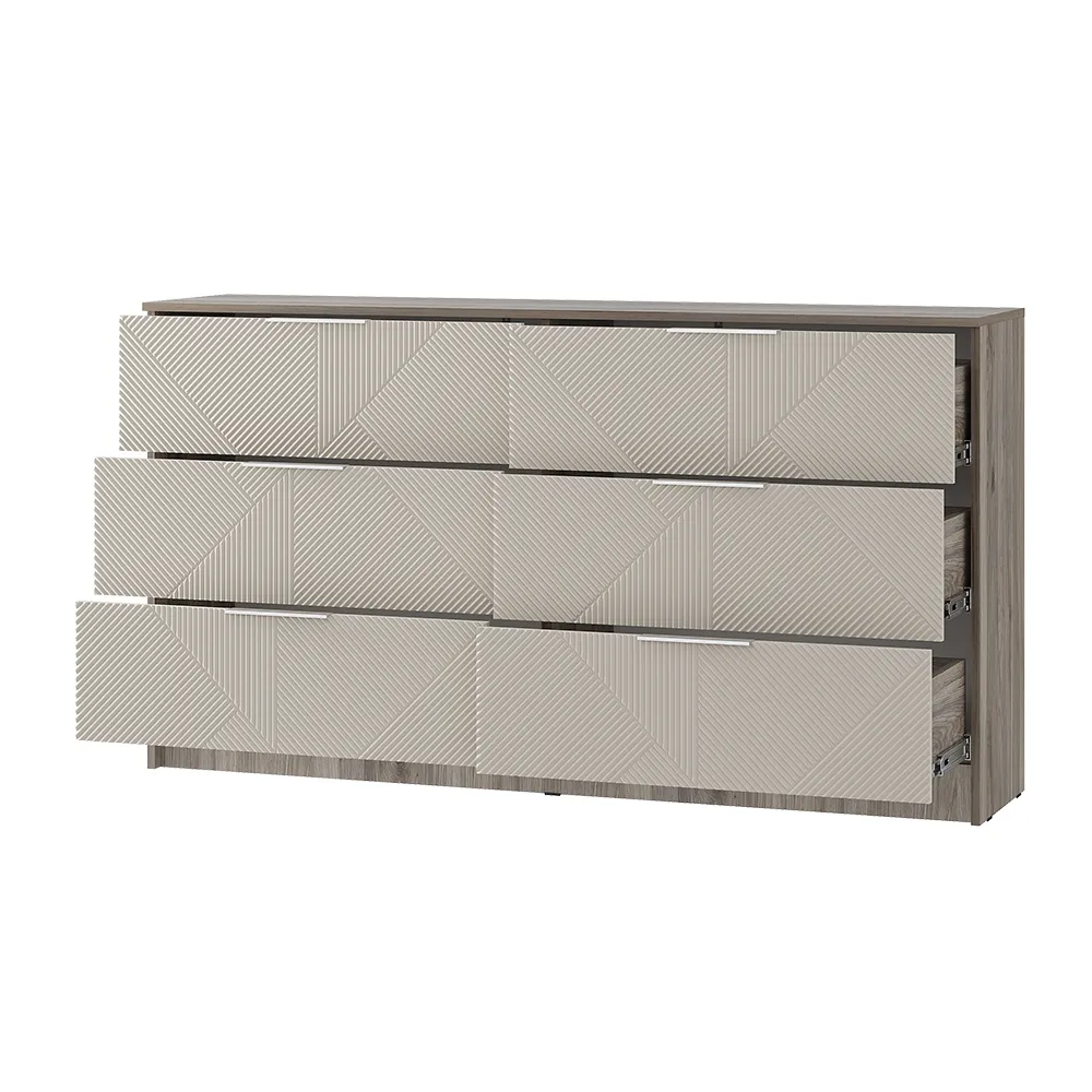 Комод «Эмилия» (КМ-04) – это идеальная альтернатива шкафу для спальни. Эта модель поможет уместить все постельное белье в одном месте, сэкономит пространство и сделает интерьер оригинальнее. Комод состоит из шести просторных ящиков.