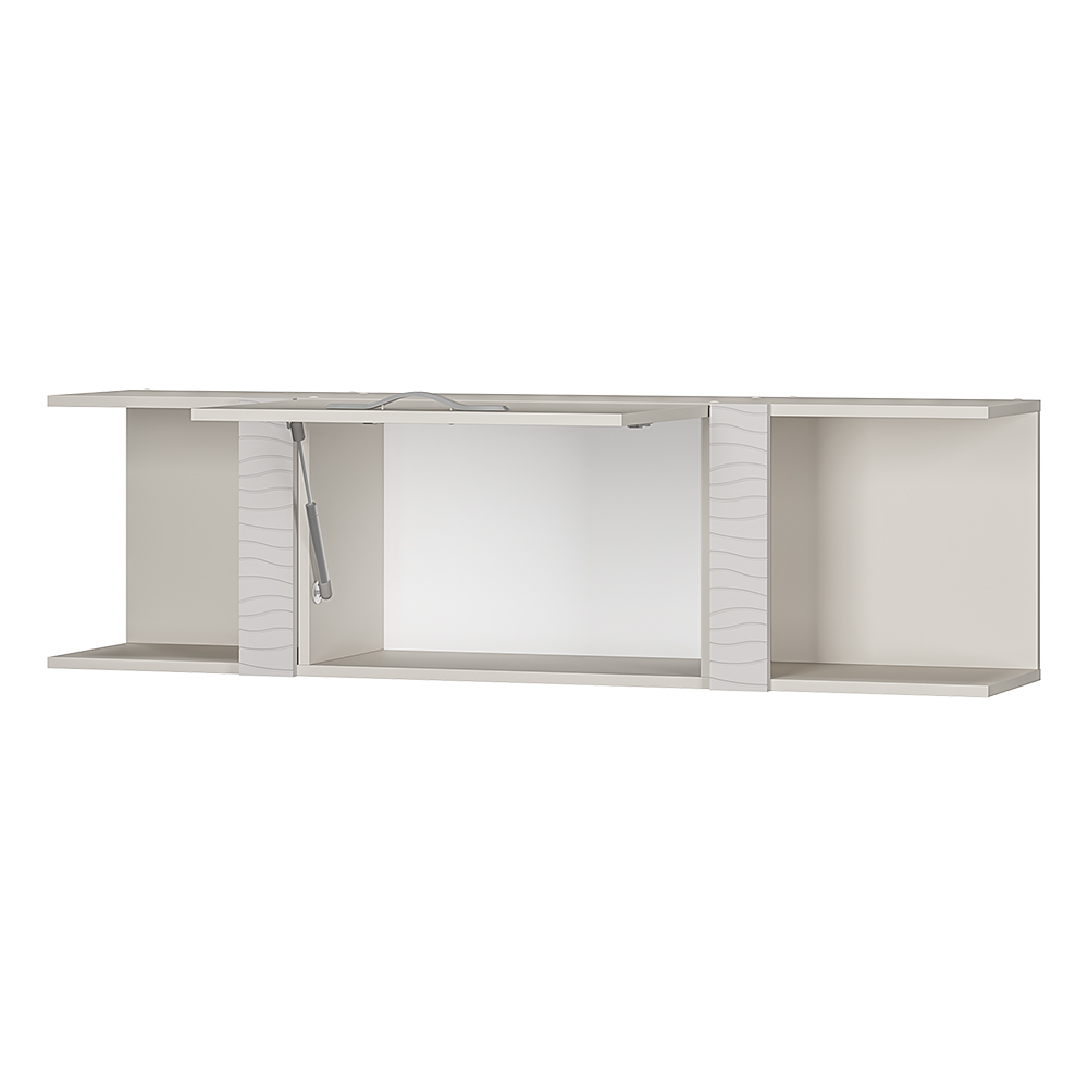 Навесная полка "Монако" – практичный и стильный предмет интерьера, который дополнит любую комнату вашего дома. Изделие изготовлено из ЛДСП приятного цвета "кашемир", фасады имеют декоративные вставки из МДФ. В открытых зонах вы можете разместить сувениры и предметы декора, а за распашной дверцей можно расположить вещи, которые должны быть скрыты.