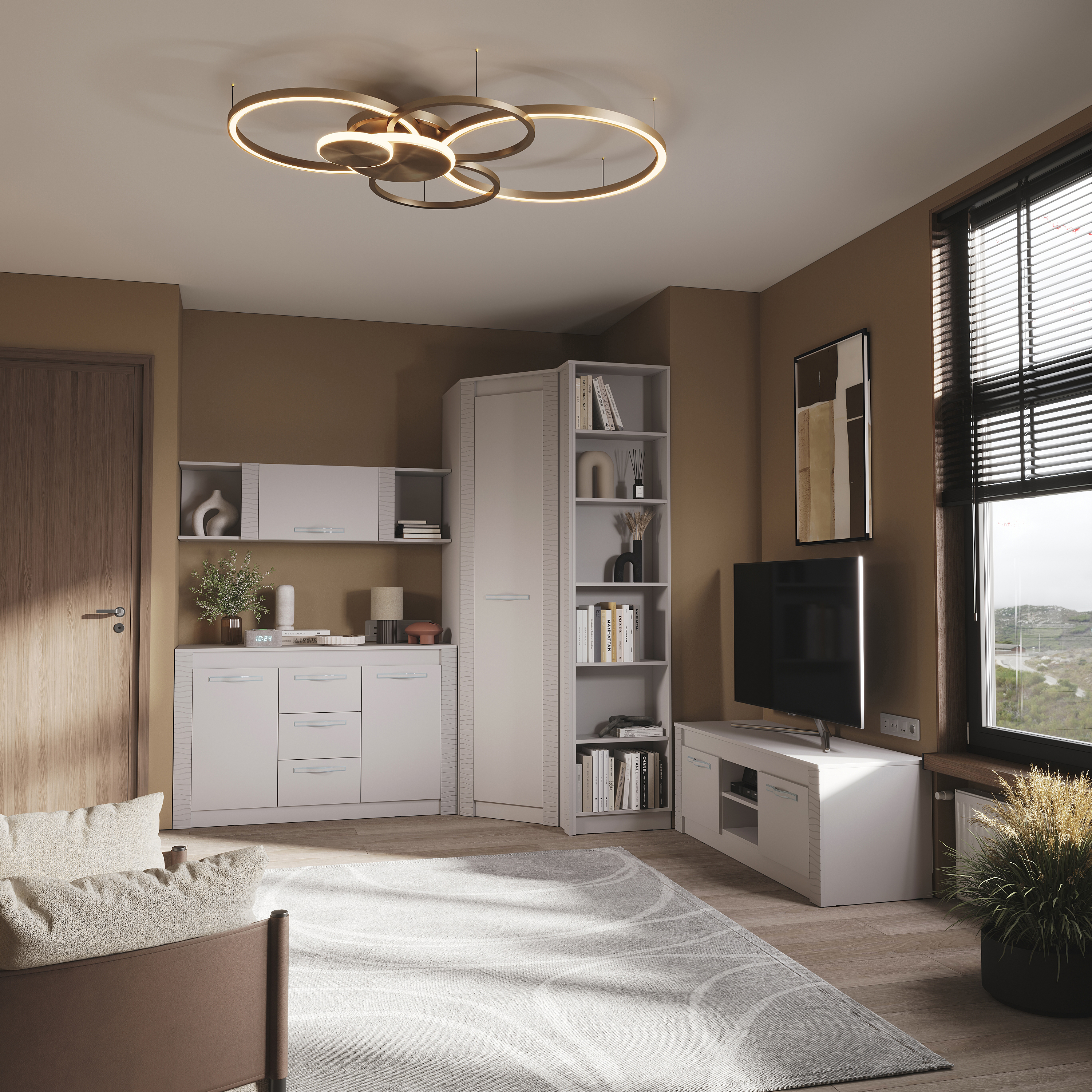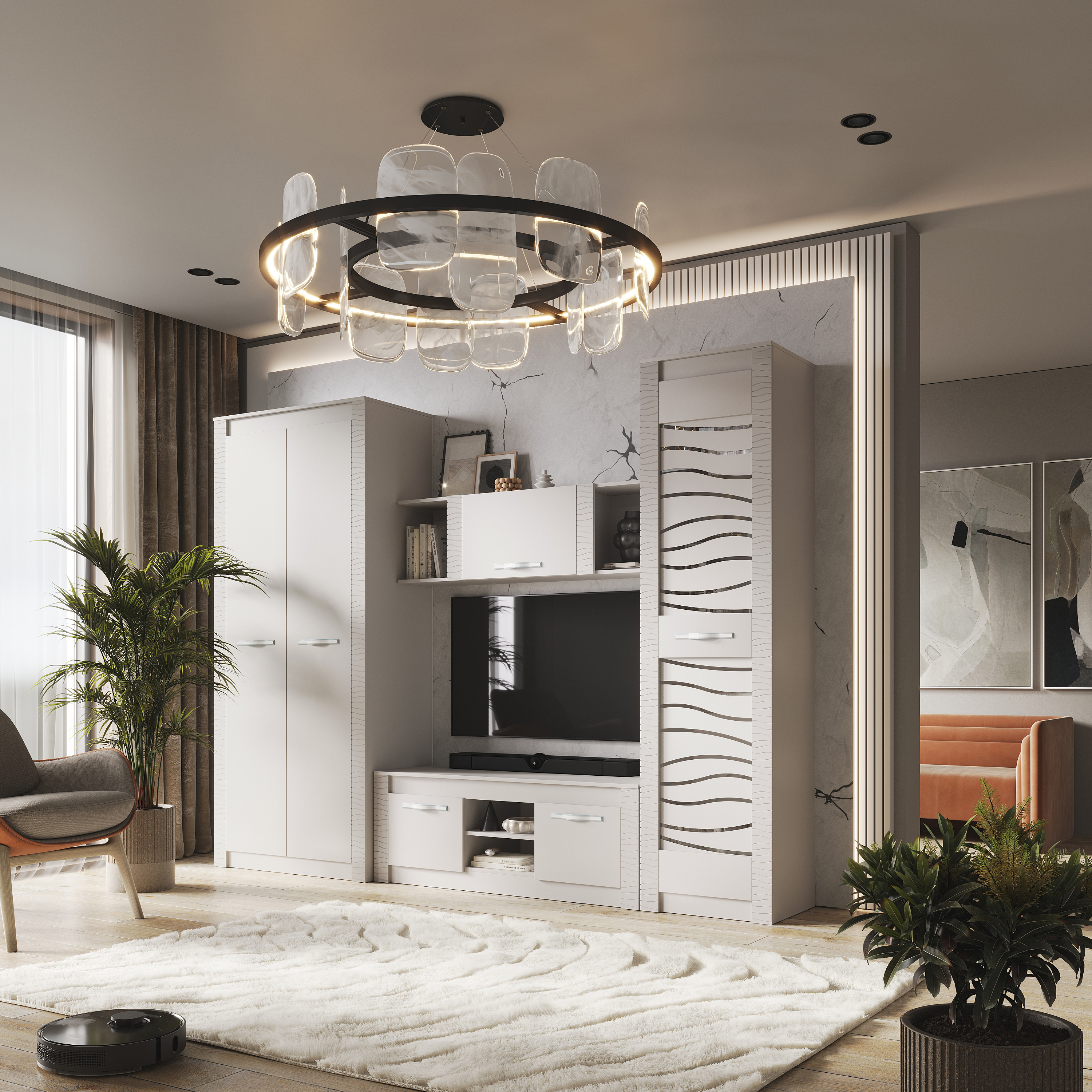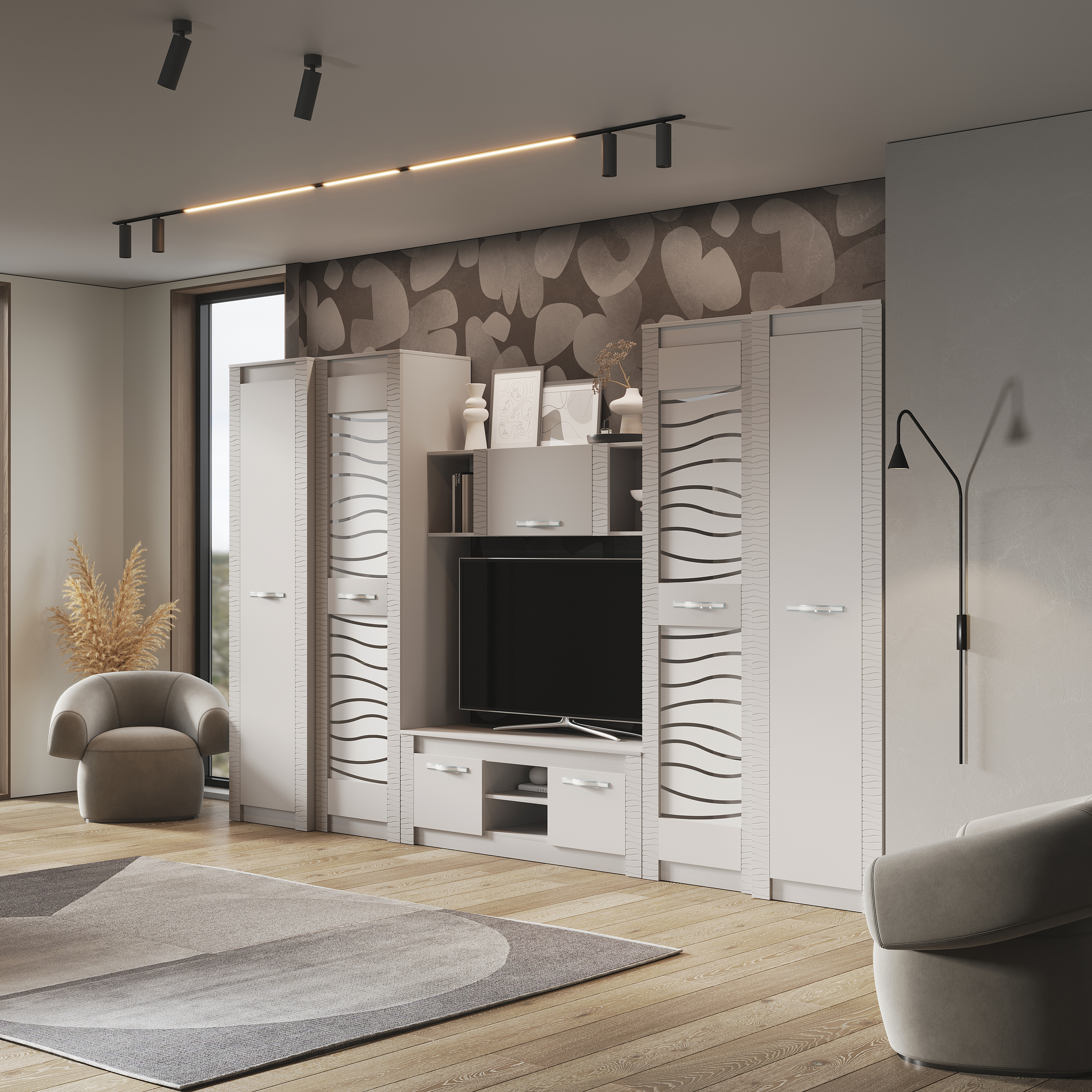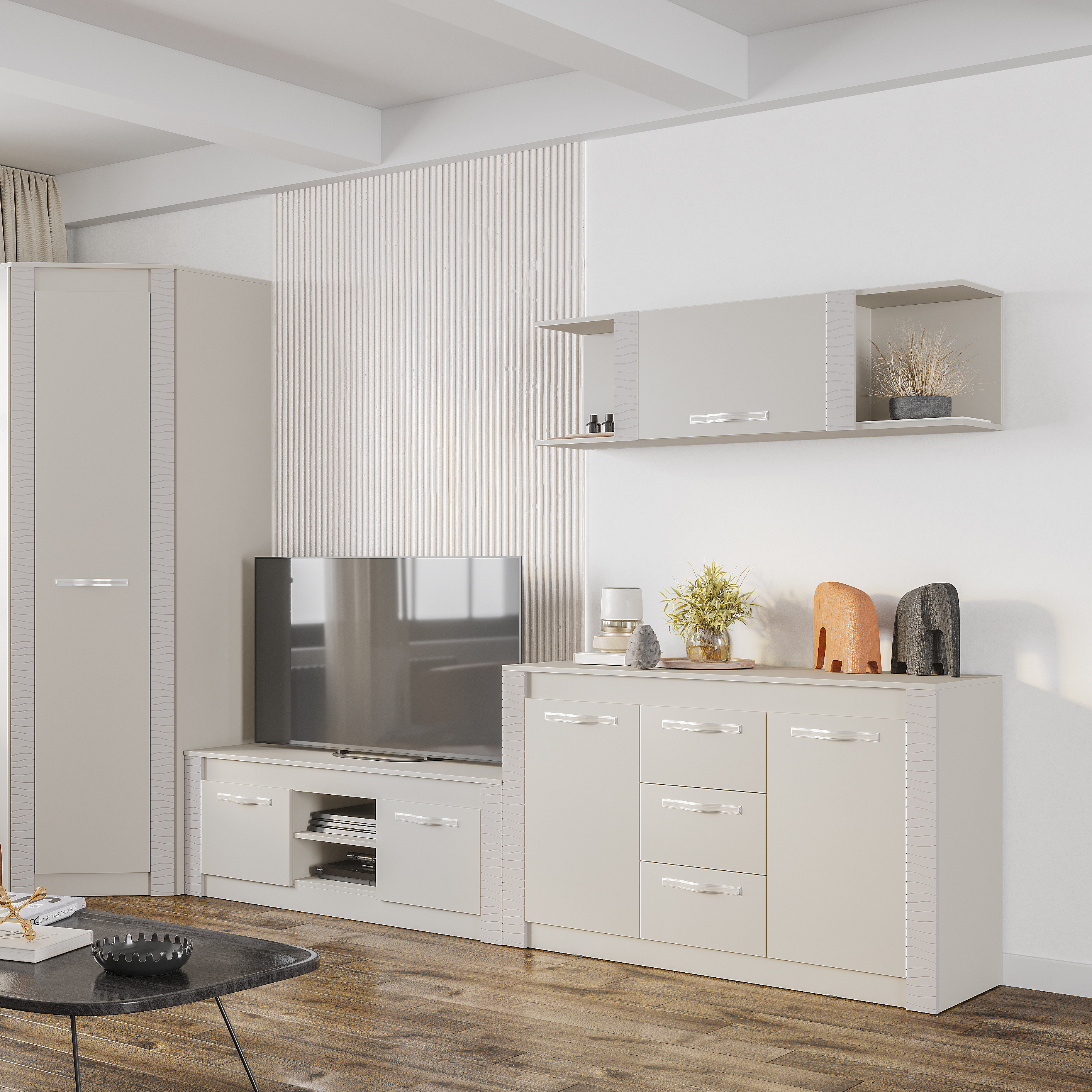 Модульная коллекция «Монако» - это универсальное решение с эргономичным дизайном и функциональностью для современного дома. Фрезеровка с волнообразными узорами на фасадах привлекает внимание. Интерьеры с белыми декорами в 2024 году заменяются на нюдовые тона. Трендовый оттенок «кашемир» позволяет использовать в интерьере теплые и холодные декоры, а также различные варианты цветового решения домашнего текстиля, аксессуаров и других элементов. Мягкий приглушённый оттенок «кашемир» является изысканным выбором для стильного дома и придаёт нотку нежности и уюта.