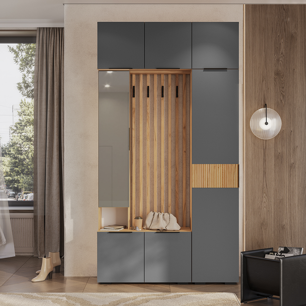 Шкаф навесной "Сандра" ШКН-03 может использоваться как самостоятельная модель, так и как надстройка для шкафа ШК-04 и пенала ПН-01, либо прихожей ПР-03 и пенала ПН-01.