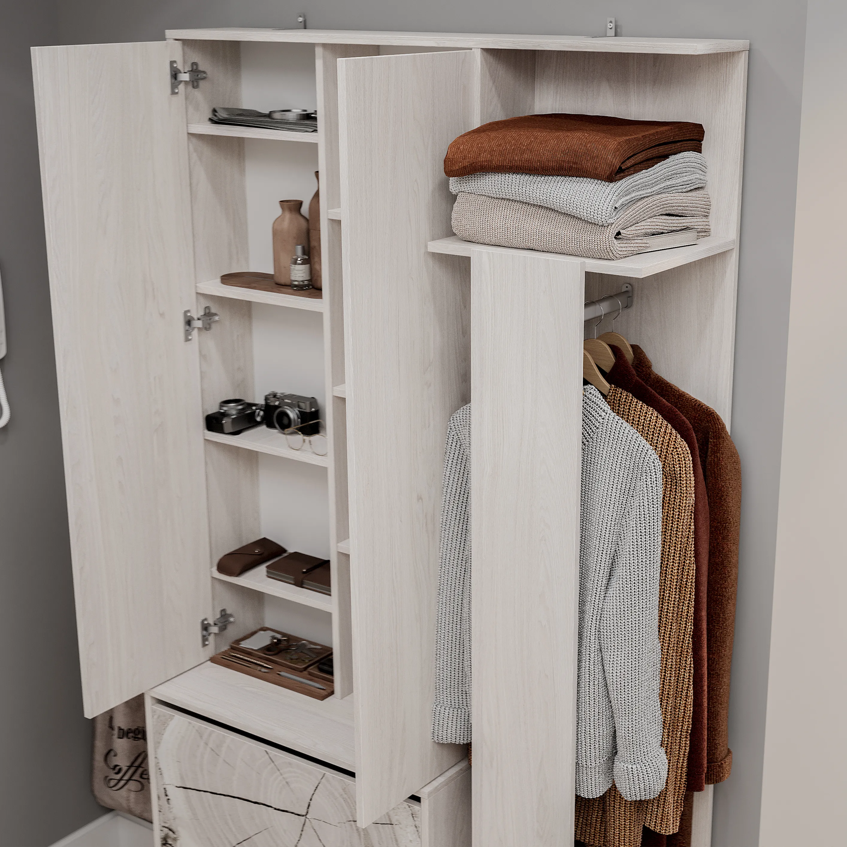 Прихожая "Россо" - модель, созданная для тех, кто ценит многофункциональность. "Россо" объединяет в себе все необходимые элементы прихожей: светлый цвет корпуса органично дополняет фасад с фотопечатью, имитирующей спил дерева.
