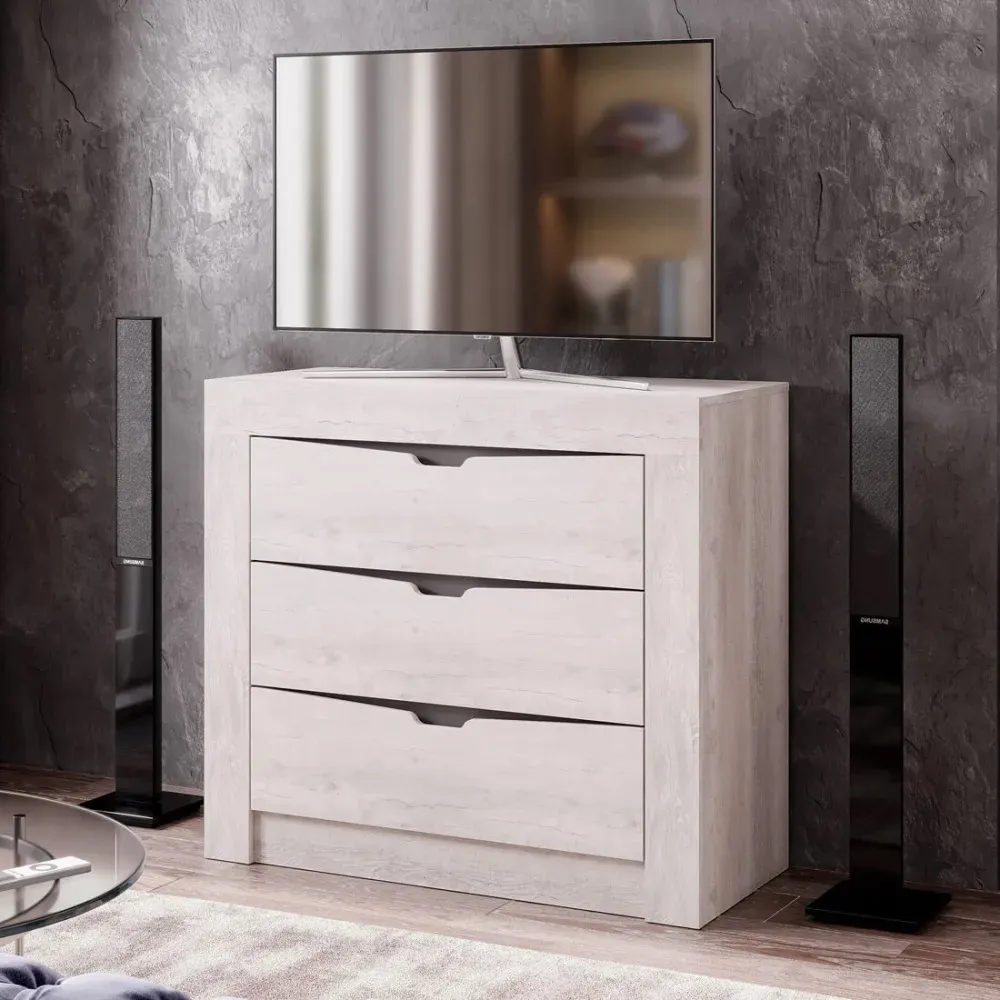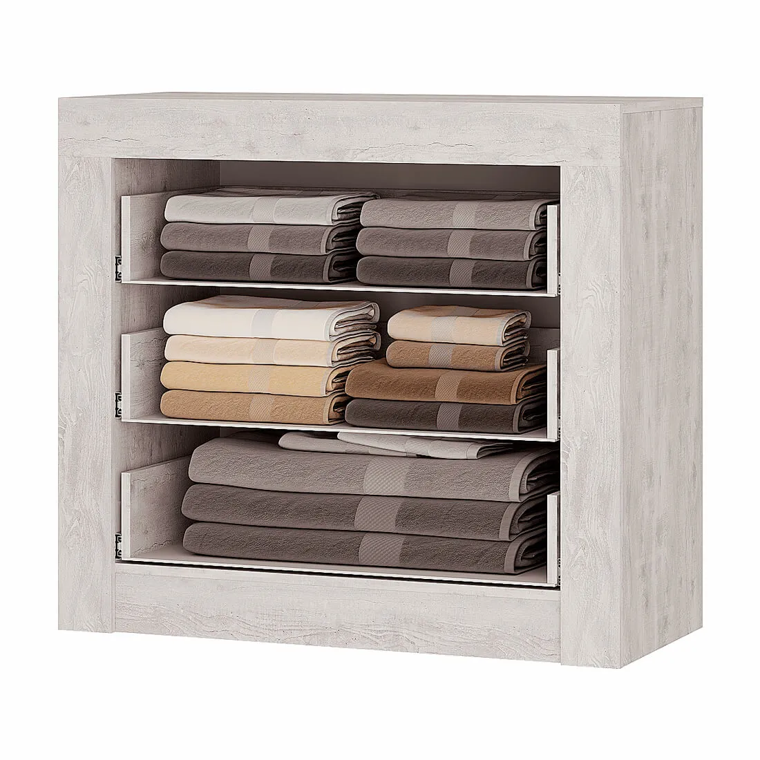 Элегантный комод «Леонардо» можно использовать как отдельно, так и в коллекции спального гарнитура. Удобная система хранения для одежды, постельных принадлежностей или других хозяйственных аксессуаров состоит из трёх вместительных выдвижных ящиков на шариковых направляющих, которые обеспечивают легкую и бесшумную эксплуатацию модели.