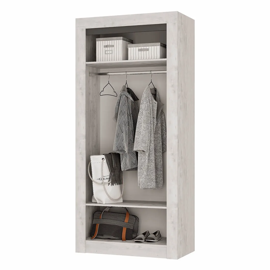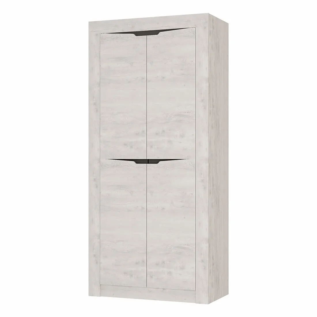 Двухстворчатый распашной шкаф «Леонардо» с просторной антресольной полкой для хранения головных уборов, горизонтальной хромированной штангой для плечиков и нижней полкой, в которой удобно хранить коробки с обувью, выдержан в общей стилистики коллекции.
