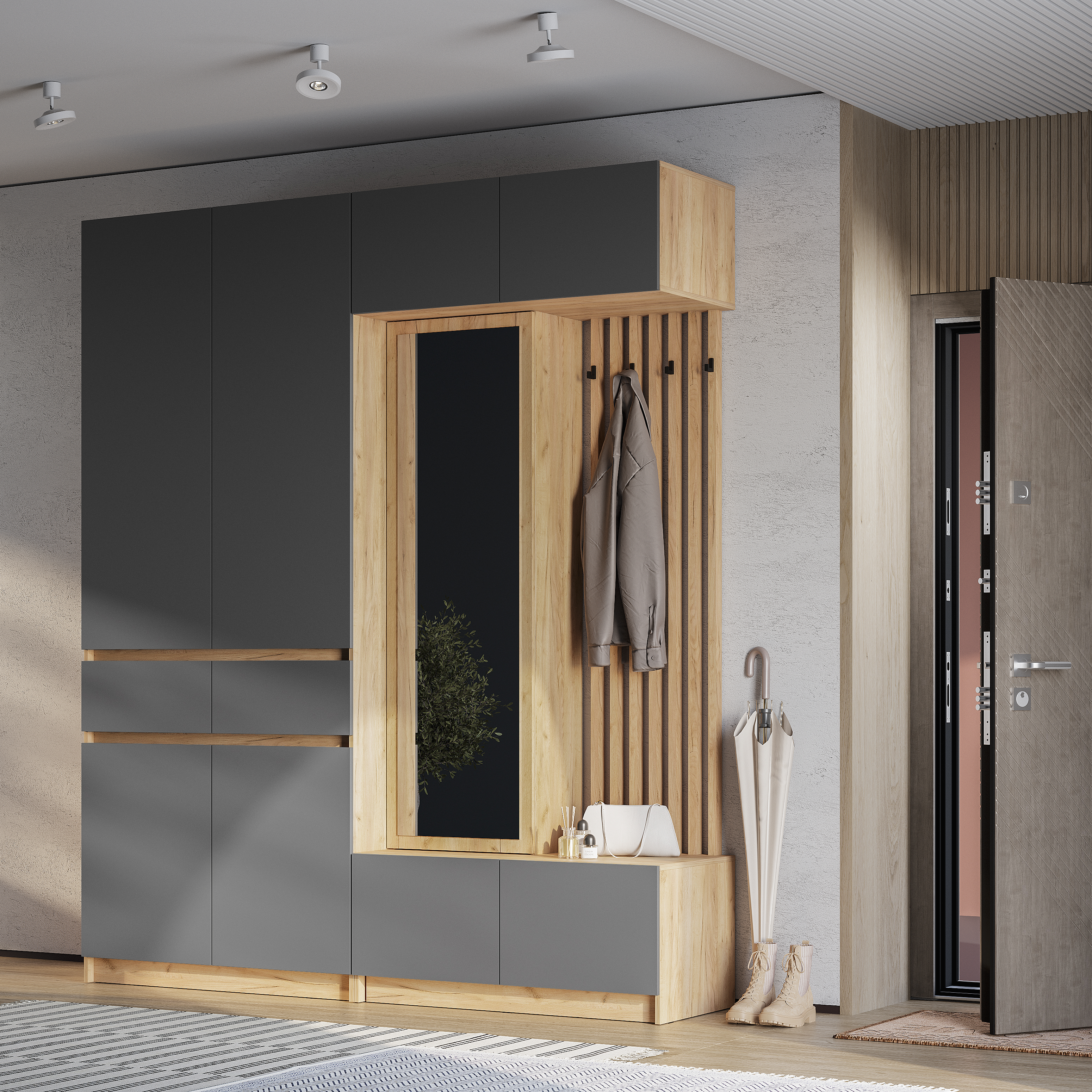 Шкаф 2-х створчатый "Багира" ШК-03 - это стиль и эргономичная конструкция. Хромированная штанга для аккуратного вертикального хранения одежды.