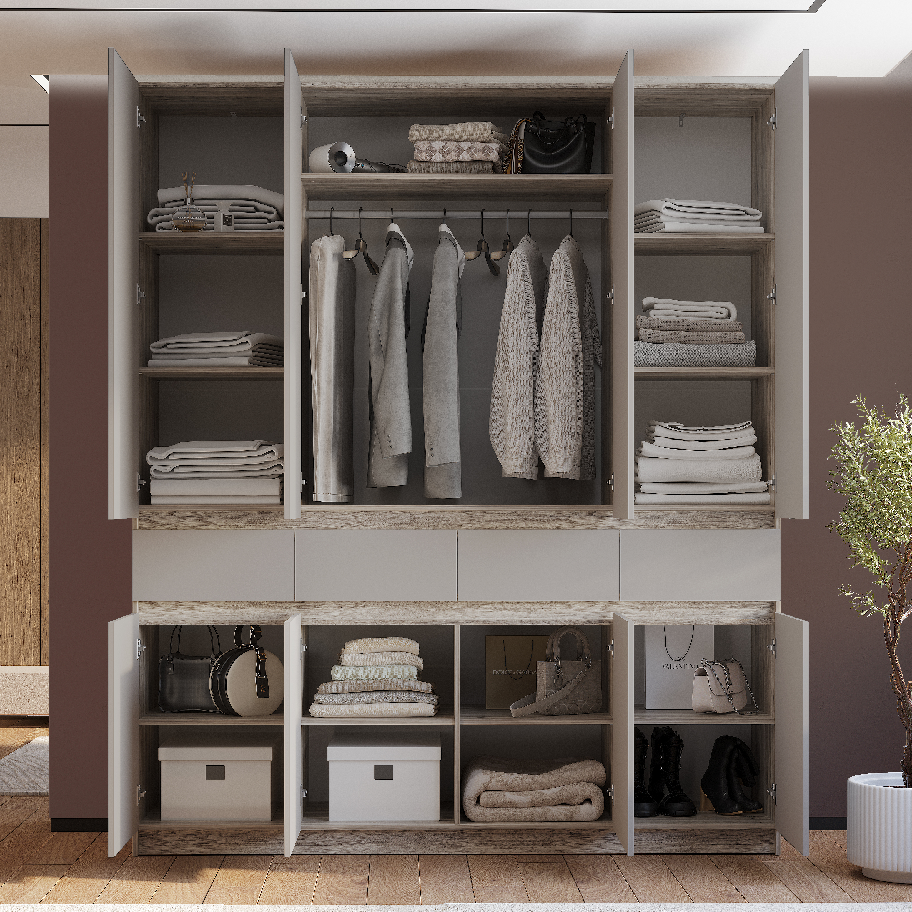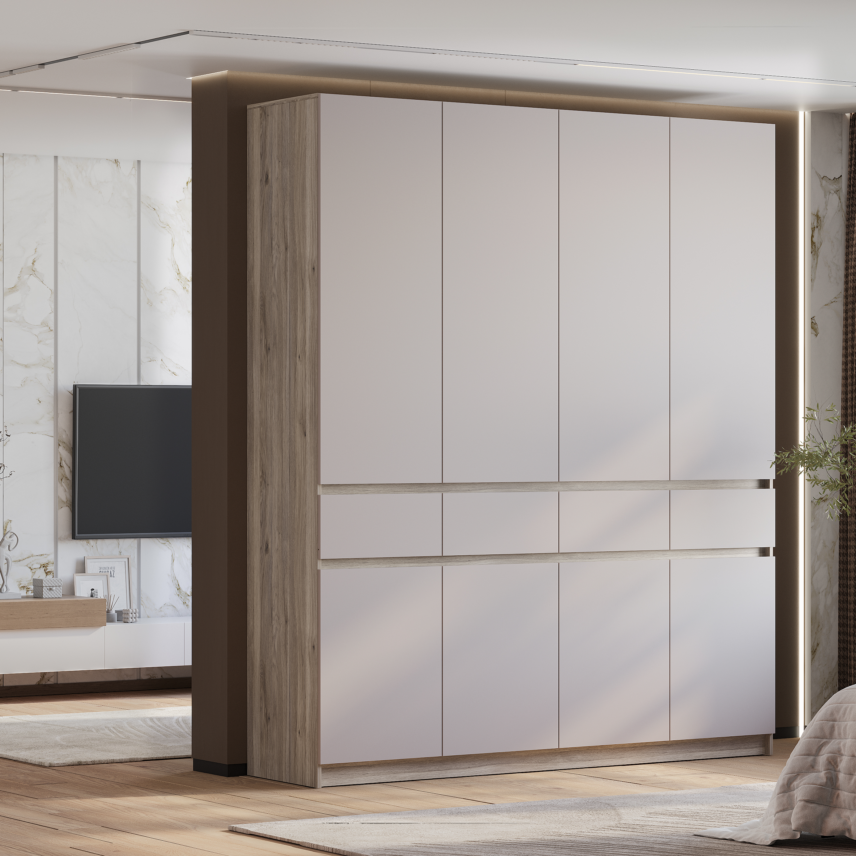 Шкаф 4-х створчатый "Багира" ШК-13 - это стиль, универсальность и вместительность. Хромированная штанга для аккуратного вертикального хранения одежды.