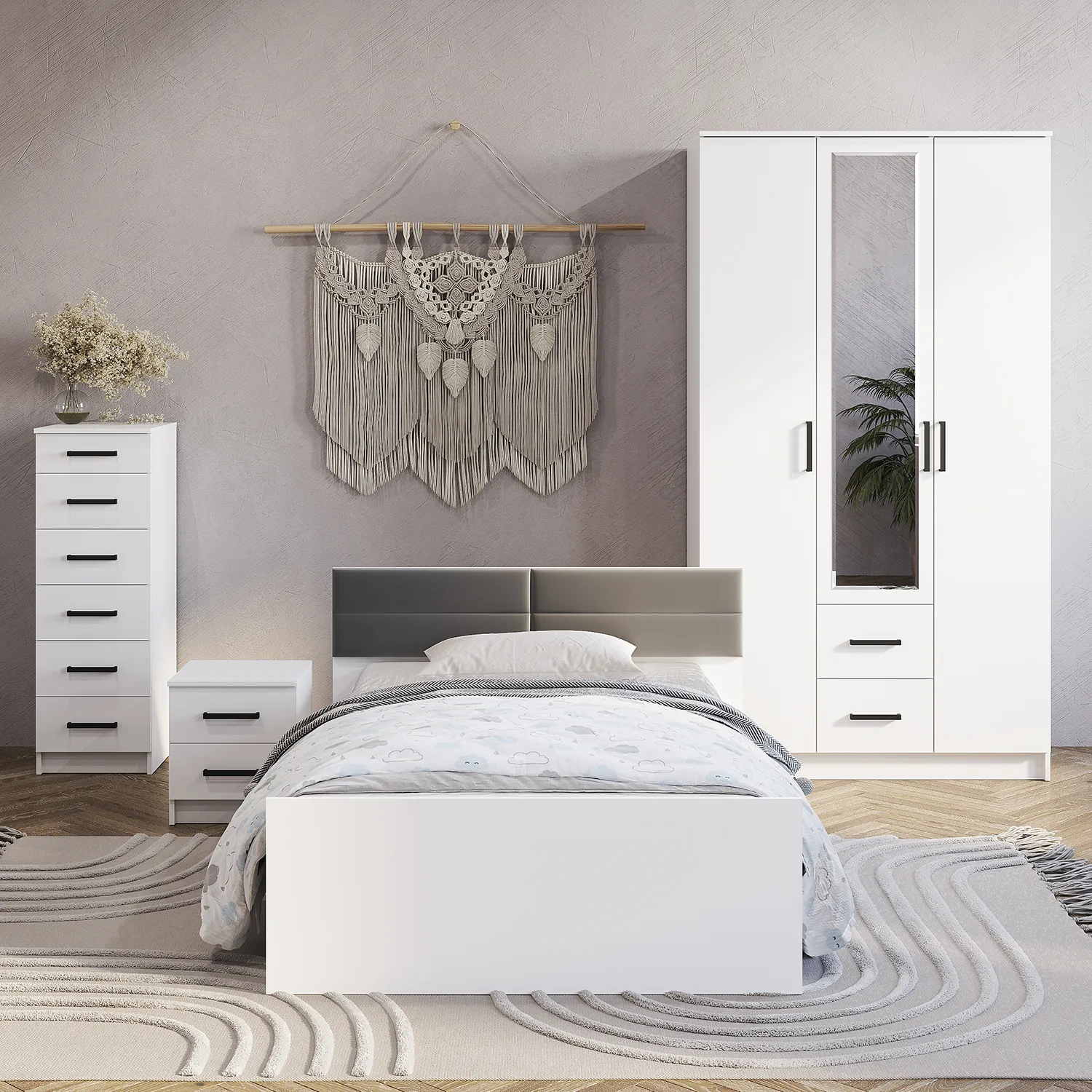 Изголовье выполняет функцию подушки, когда вам нужно облокотиться. Текстиль не выцветает и легко поддается чистке, а также приятен на ощупь. Мягкая кроватка идеально подходит для создания уюта и комфорта в вашей спальне, обеспечивая отличное место для отдыха и расслабления. Комната с мебелью серии "Фьюжн" становится удобной зоной для чтения книги или просмотра любимого сериала, для романтического ужина или завтрака в постель. Наш гарнитур открывает простор для творчества, работы или учебы в домашней обстановке. Отсутствие бортиков позволяет разместить рядом комод, шкаф или прикроватную тумбу, а также туалетный столик с зеркалом. Данная модель не оснащена ножками, что предотвращает лишнее скопление пыли. Эта кровать также отлично подходит для использования в гостевых комнатах. Оптимальный вариант для бизнеса: гостиниц, аренды и спа.