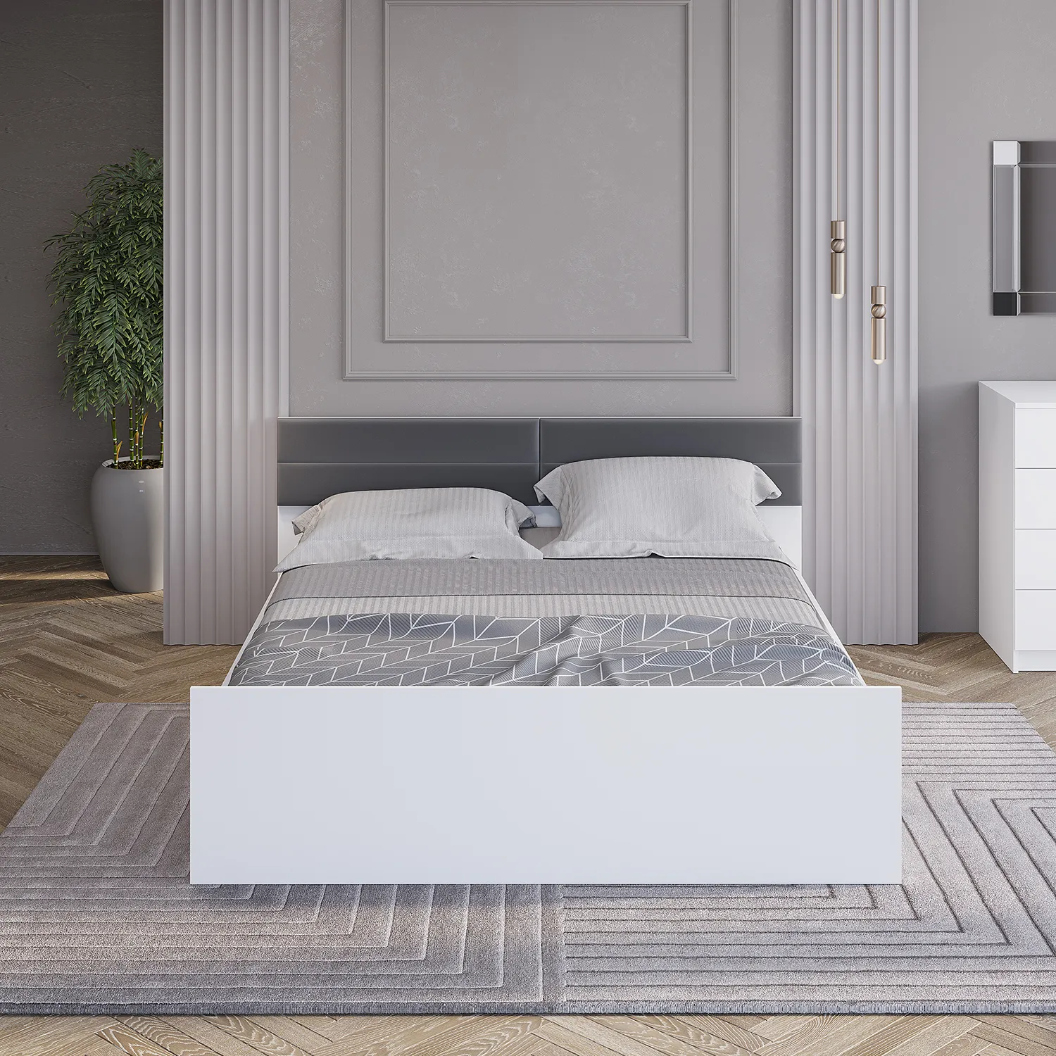 Широкая кровать в минималистичном стиле – это модель для ценителей простого и понятного функционала. Белая двуспальная кровать "Фьюжн" размером 160*200 с мягким изголовьем из ткани велюр цвете графит - идеальный выбор для создания уютной и стильной обстановки в вашей спальне.