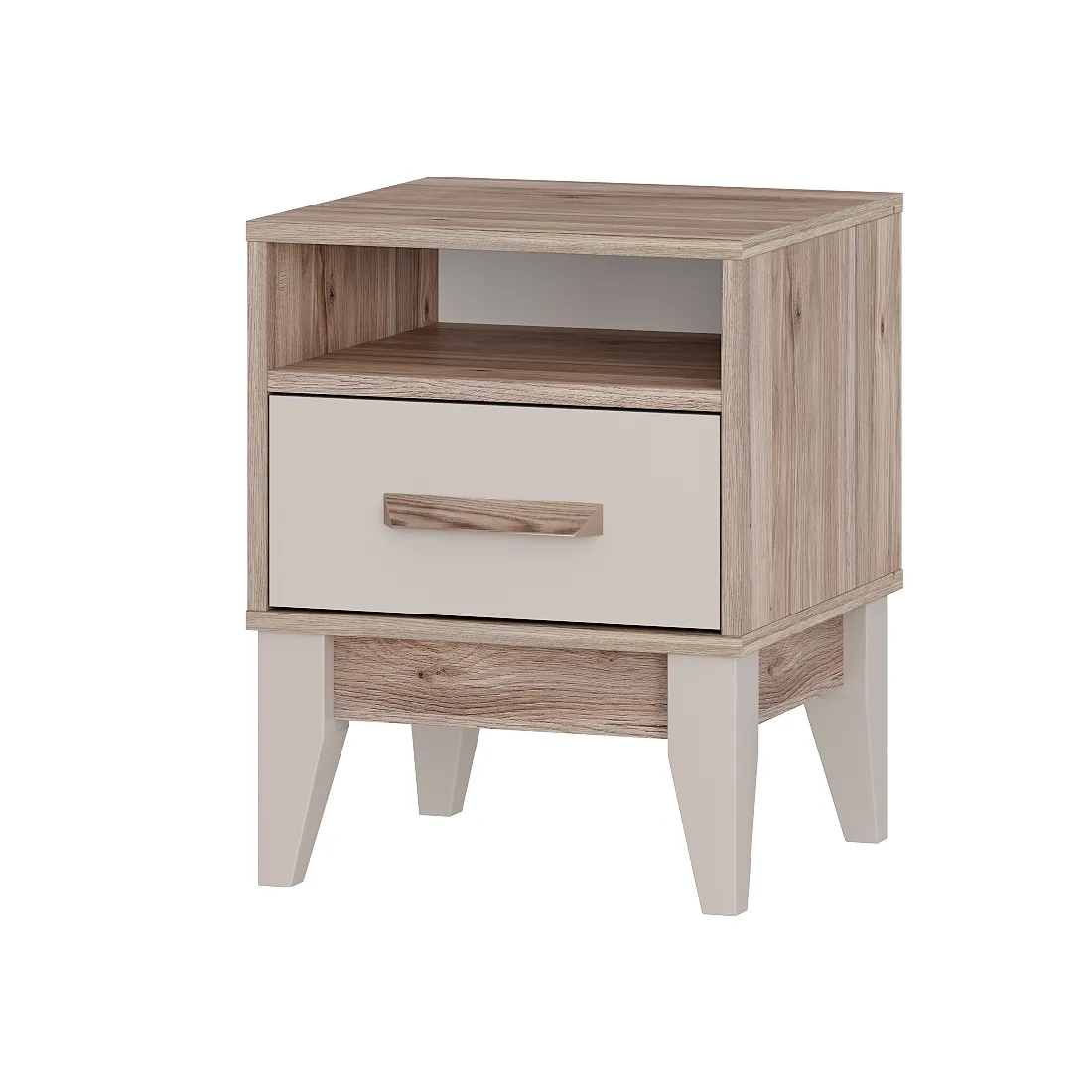 Отличный выбор для спальни – прикроватная тумба "Скандика". В выдвижном ящике, дополненным удлиненной ручкой геометрической формы, можно хранить все необходимые вещи.
