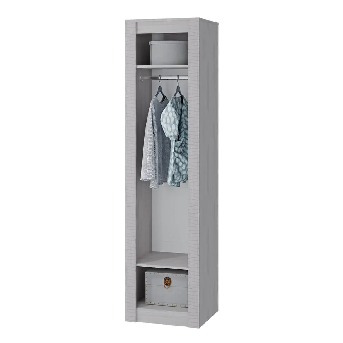 Пенал "Монако" – практичный и стильный вариант для интерьера. Модель позволит разместить небольшой гардероб. Пенал состоит из отделения со штангой для вешалок и ниши для вещей. Изделие выполнено из ЛДСП в цвете "ясень белый", фасад дверцы оснащен эргономичной ручкой. Возможно дополнительно укомплектовать полками ПЛ-09, которые приобретаются отдельно.