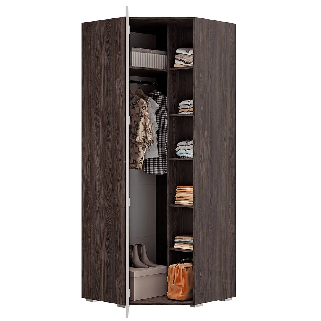 Угловой шкаф «Моника» – с одной стороны шесть полок для хранения одежды и белья, с другой стороны - просторное отделение со штангой.