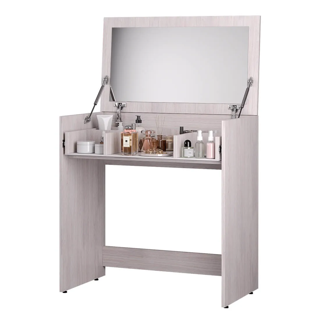Компактная модель косметического стола "Кимберли" поможет вам разметить все необходимые средства по уходу за собой. При этом они будут не на виду, а спрятаны под откидной крышкой, в которое встроено зеркало. Выдвижной ящик с красивым черным фасадом из крашеного стекла разделен на несколько секций, чтобы в вашем столике всегда был порядок. В закрытом положении модель "Кимберли" может использоваться как письменный стол.