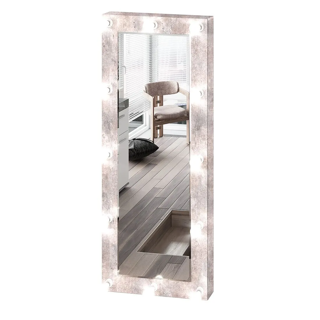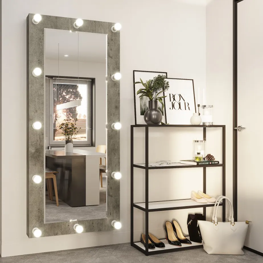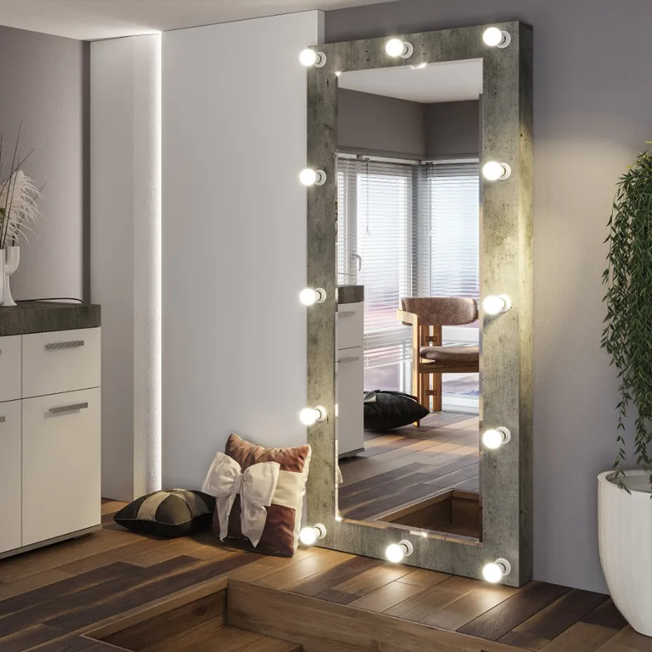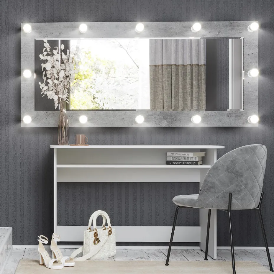 Большое зеркало "Инстайл" – это предмет интерьера, который помимо своей основной функции, позволит вам визуально расширить пространство и привнести больше света в помещение. Модель можно разместить в любой комнате, как вертикально, так и горизонтально. Рама зеркала изготовлена из ЛДСП в цвете "бетон" и дополнена по всему периметру лампочками с выключателем. Лампочки приобретаются отдельно.