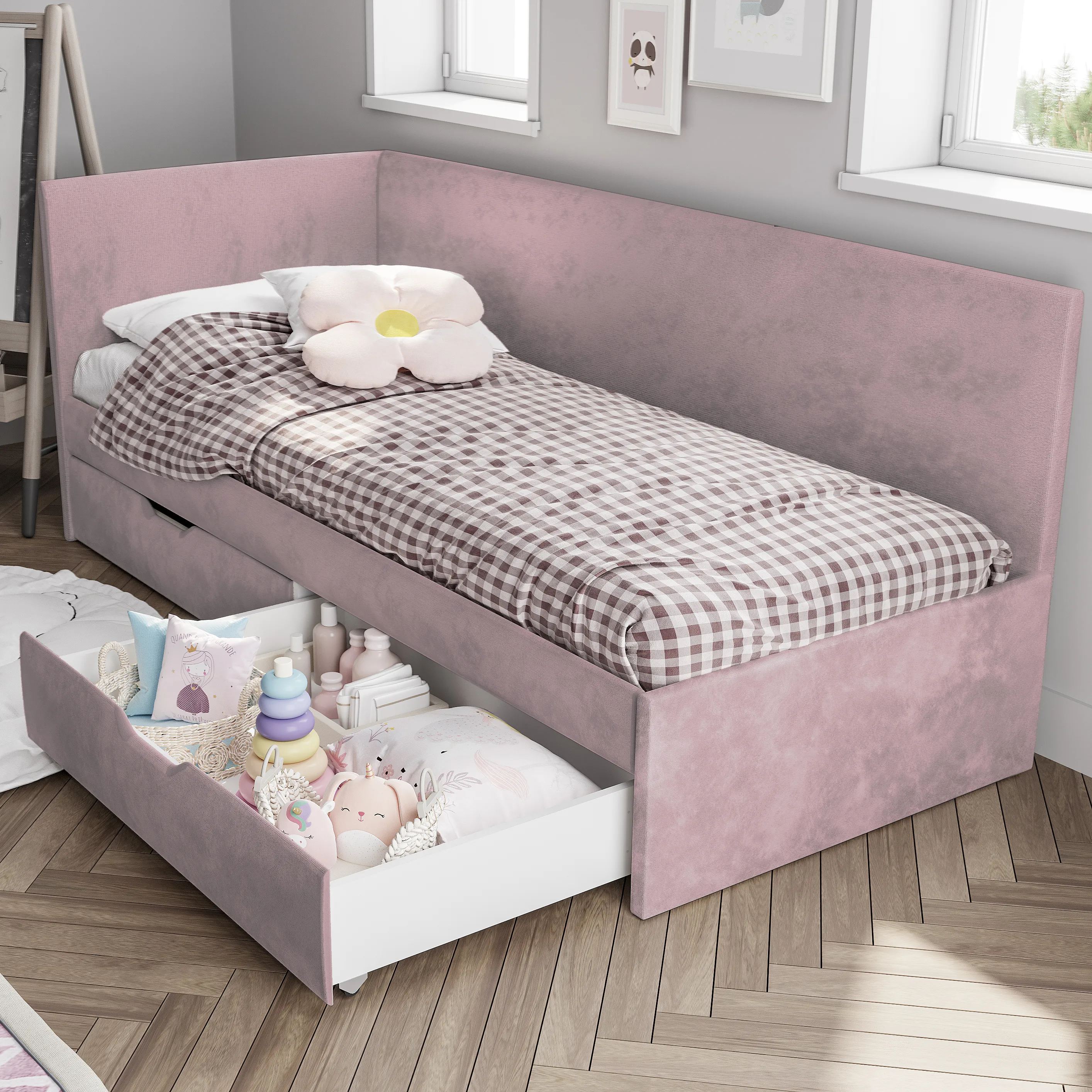 Кровать «Лео» - лучший выбор для детской комнаты. Плавные и лаконичные линии конструкции создадут атмосферу гармонии и спокойствия. Одно из важных преимуществ кровати – это мягкая обивка из велюра, что обеспечивает более комфортное и безопасное использование. Корпус – ЛДСП/ДСП 16 мм, оклеенный поролоном 20 мм и тканью велюр. Фасад – ЛДСП 16 мм, оклеенный поролоном 20 мм и тканью велюр. Ткань велюр с эффектом хамелеона, не оставляет следов. Этот эффект достигается за счет специальной обработки материала, который содержит глянцевые частицы, отражающие свет под разными углами.