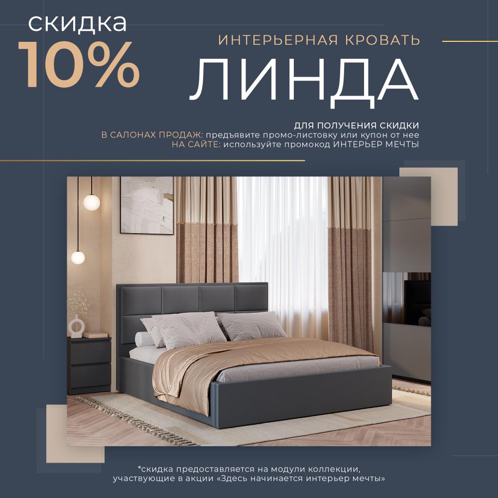 Внимание! В салонах мебели при предъявлении купона или листовки на кровать "Линда" 1,6 м КР-16 действует СКИДКА -10% на единоразовую покупку!