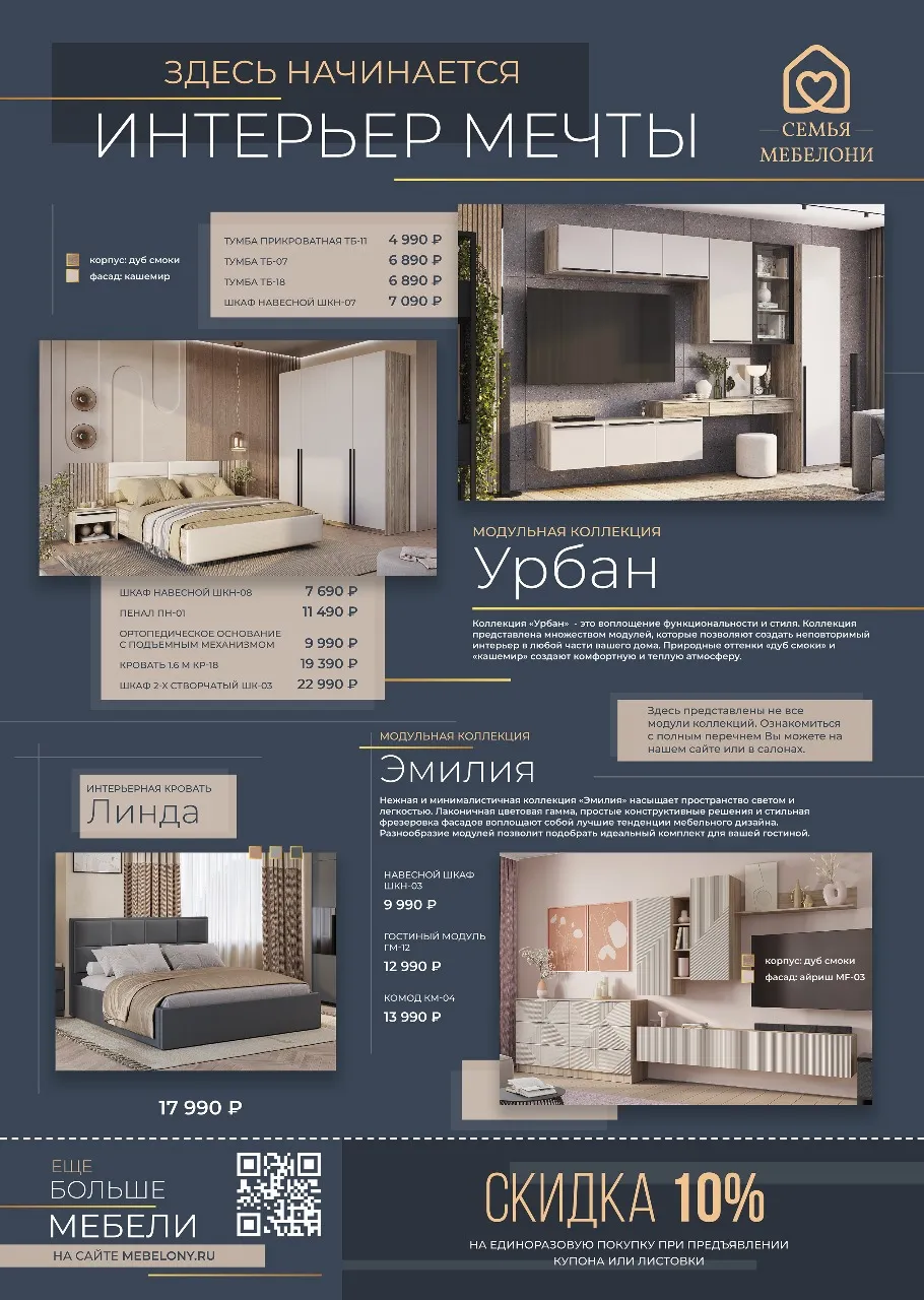 Внимание! В салонах мебели при предъявлении купона или листовки на представленные модули коллекций действует СКИДКА -10% на единоразовую покупку!