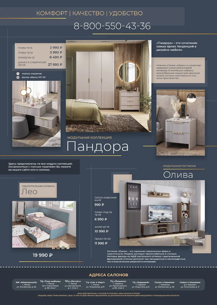 - ТЦ «Твоя мебель» г. Пенза, проспект Строителей, д. 38, этаж 1 пн-сб. 10:00 - 20:00, вс. 10:00 - 18:00