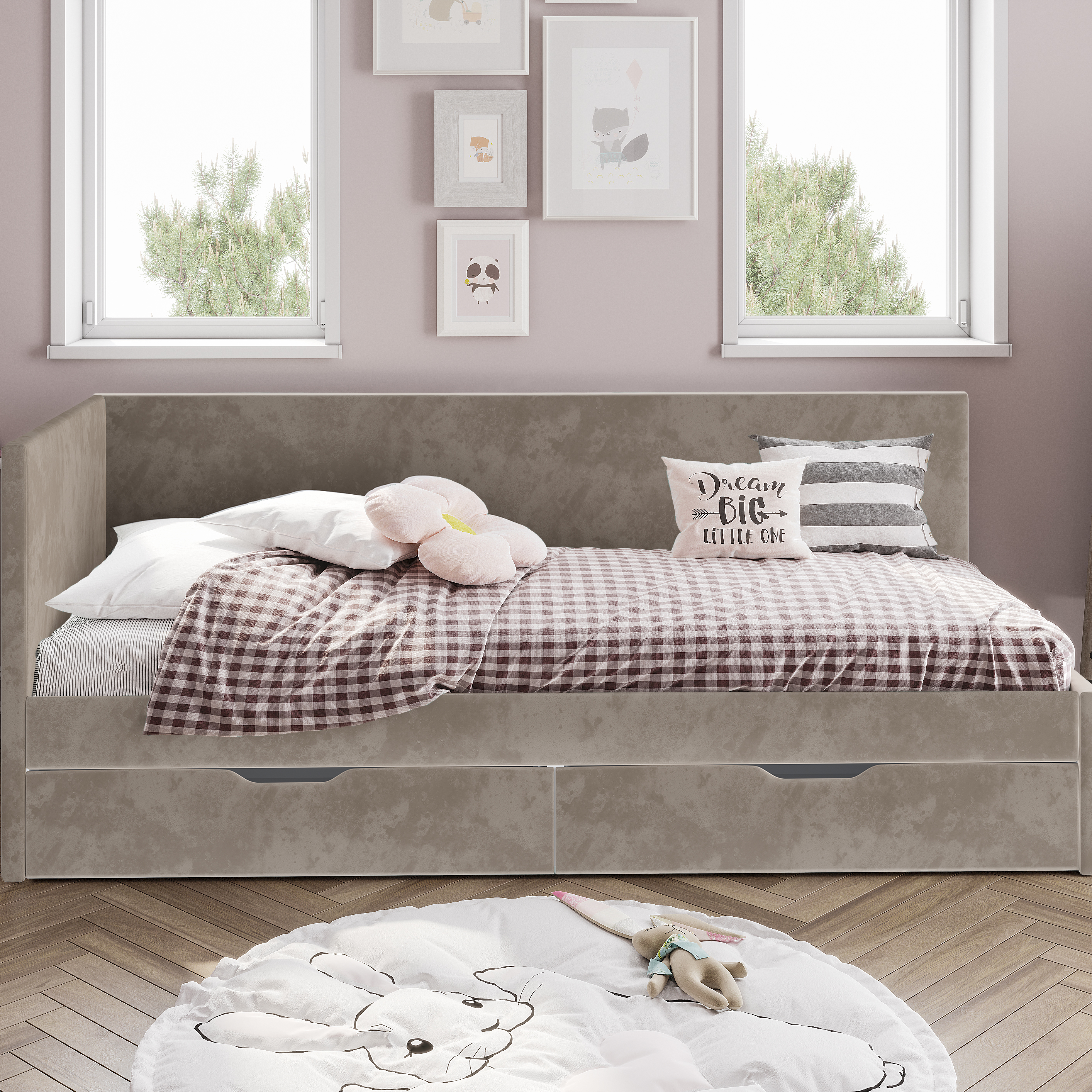 <virtues>Заказала две кроватки сыновьям, сразу с матрасами и подушками. Доставка быстрая. Сборка легкая. Отлично вписались в интерьер. Старший спит беспокойно и мягкая обивка очень уместна. Спасибо за недорогие и красивые модели!</virtues>