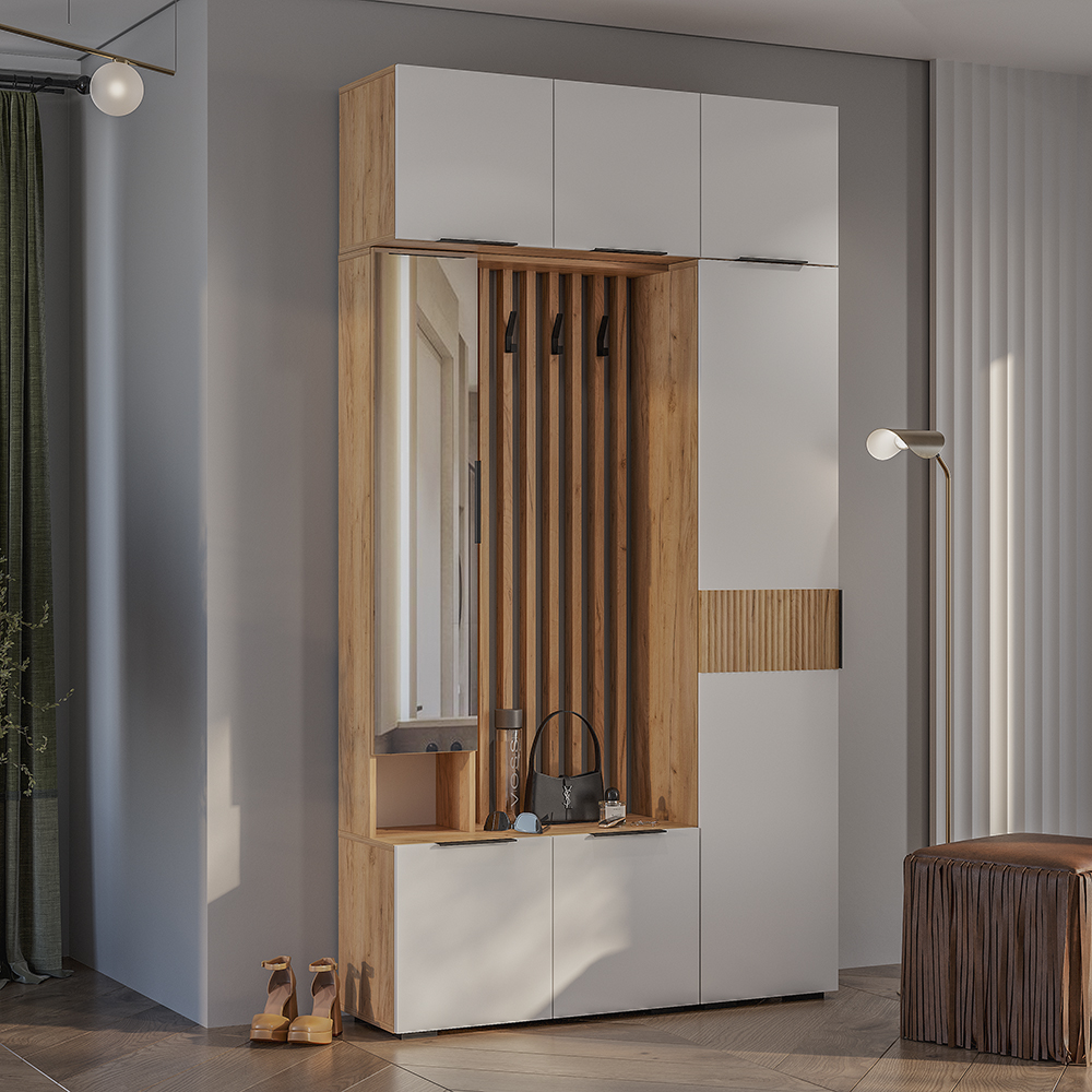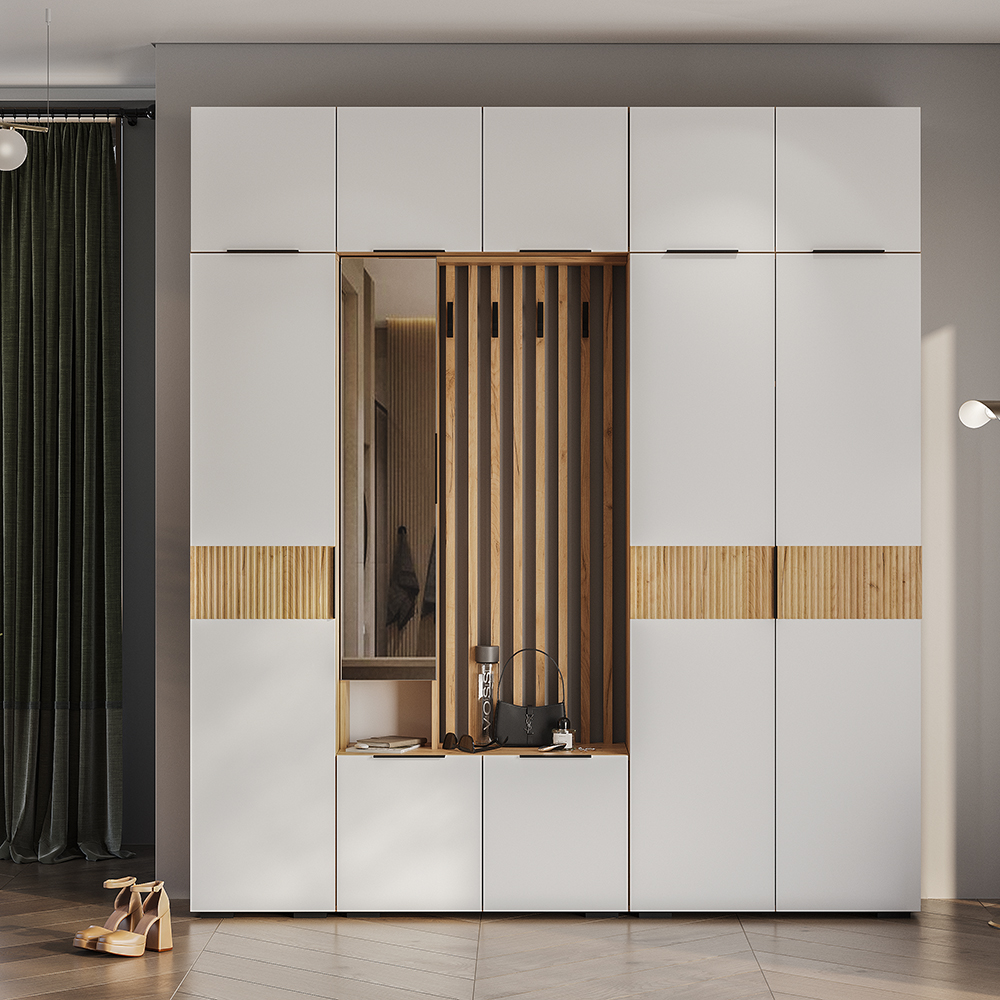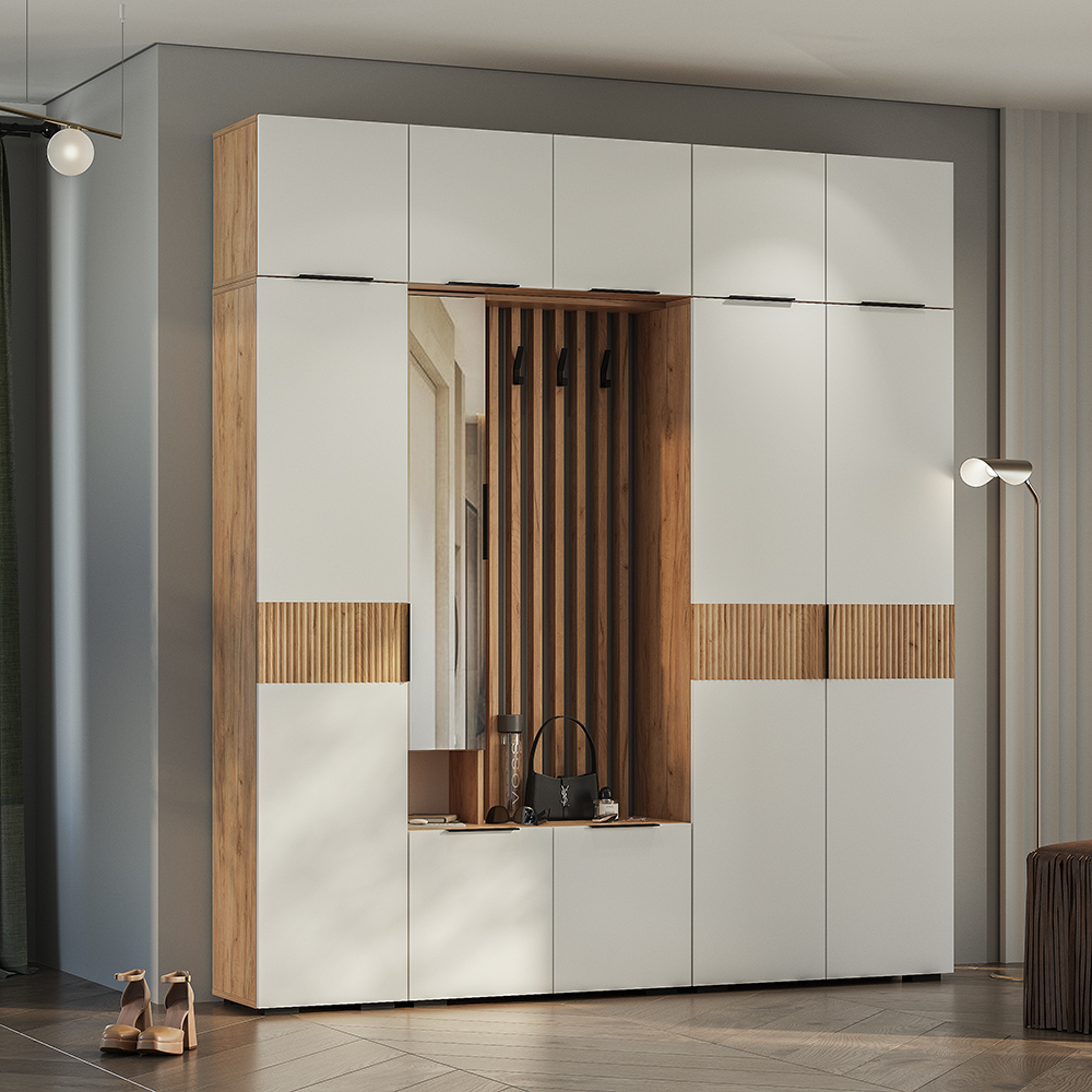 Шкаф навесной "Сандра" ШКН-03 может использоваться как самостоятельная модель, так и как надстройка для шкафа ШК-04 и пенала ПН-01, либо прихожей ПР-03 и пенала ПН-01.