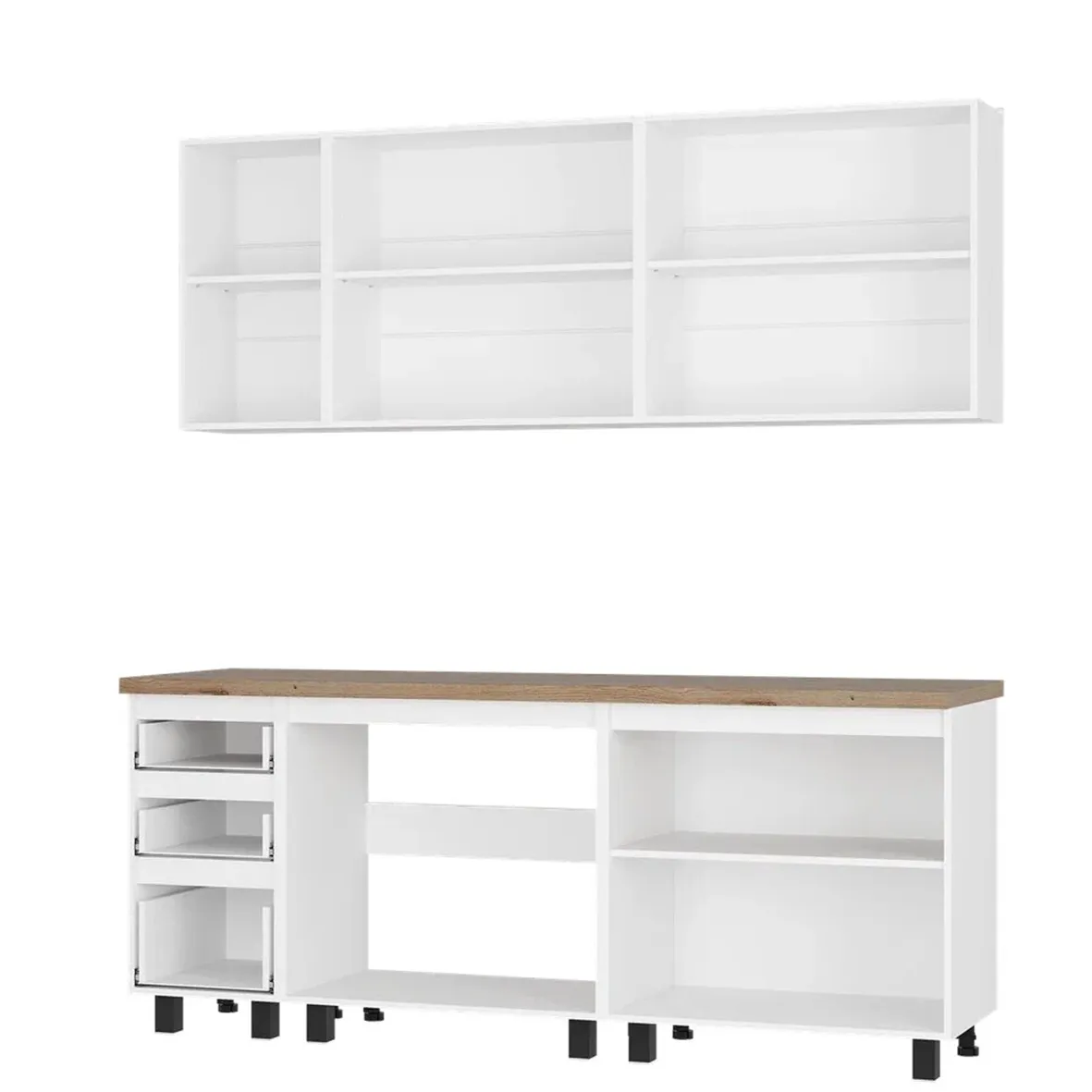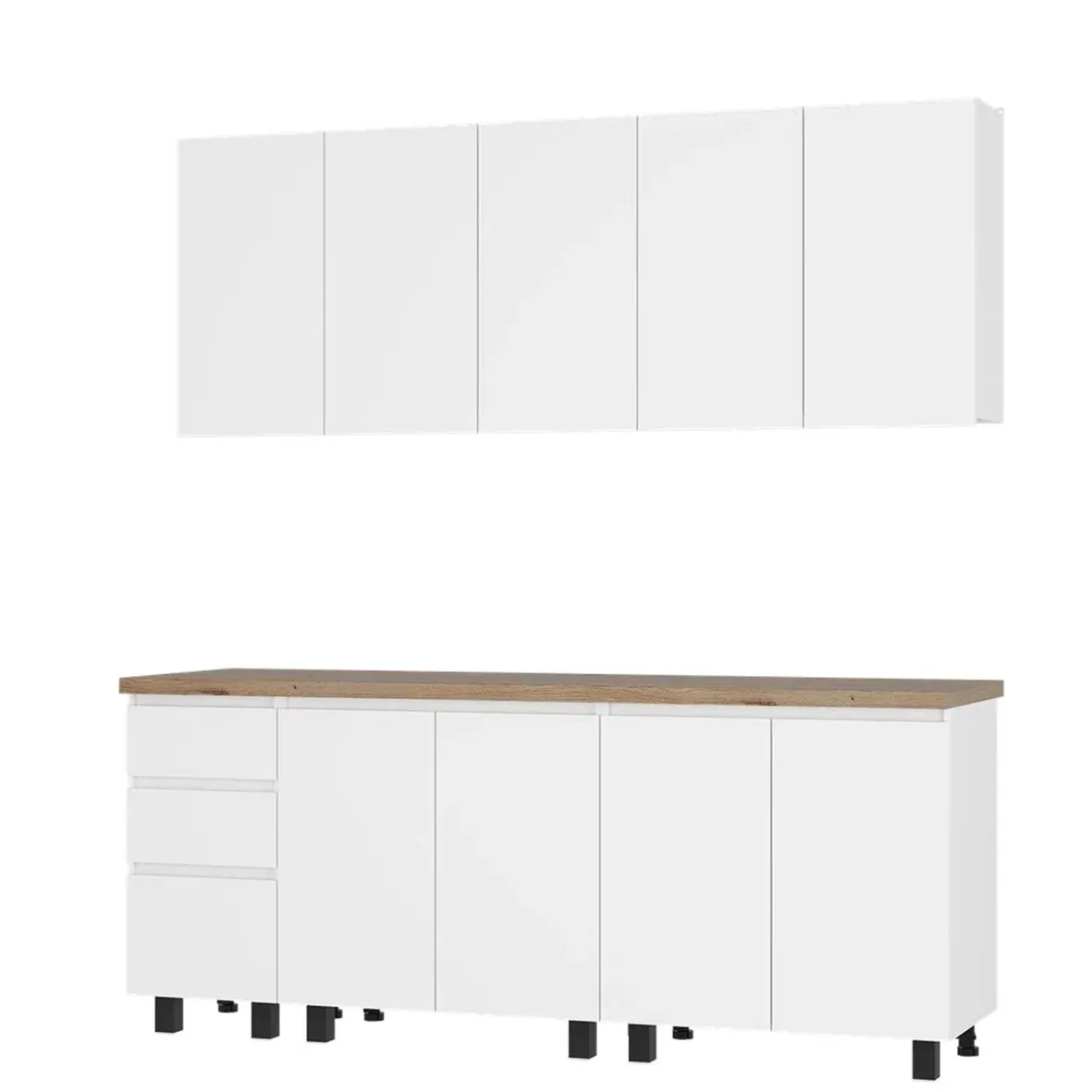 Размеры низ: ширина - 2000 мм, высота - 858 мм, глубина - 595 мм. Размеры верх: ширина - 2000 мм, высота - 720 мм, глубина - 304 мм.