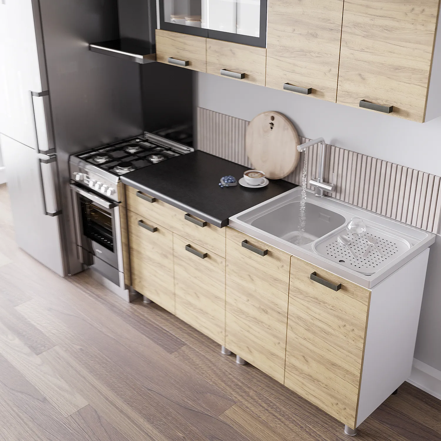 <virtues>Недавно установили готовое решение для маленькой кухни, и это было отличное решение! Компактный и продуманный дизайн позволяет максимально эффективно использовать пространство. Все необходимые элементы — от шкафчиков до рабочей поверхности — идеально вписываются в небольшую площадь, не создавая ощущения тесноты. Качество материалов и фурнитуры на высоте, все выглядит стильно и современно. Установка прошла быстро и без проблем. Теперь готовка стала намного удобнее и приятнее. Рекомендуем всем, кто ищет функциональное и эстетичное решение для маленькой кухни!</virtues>