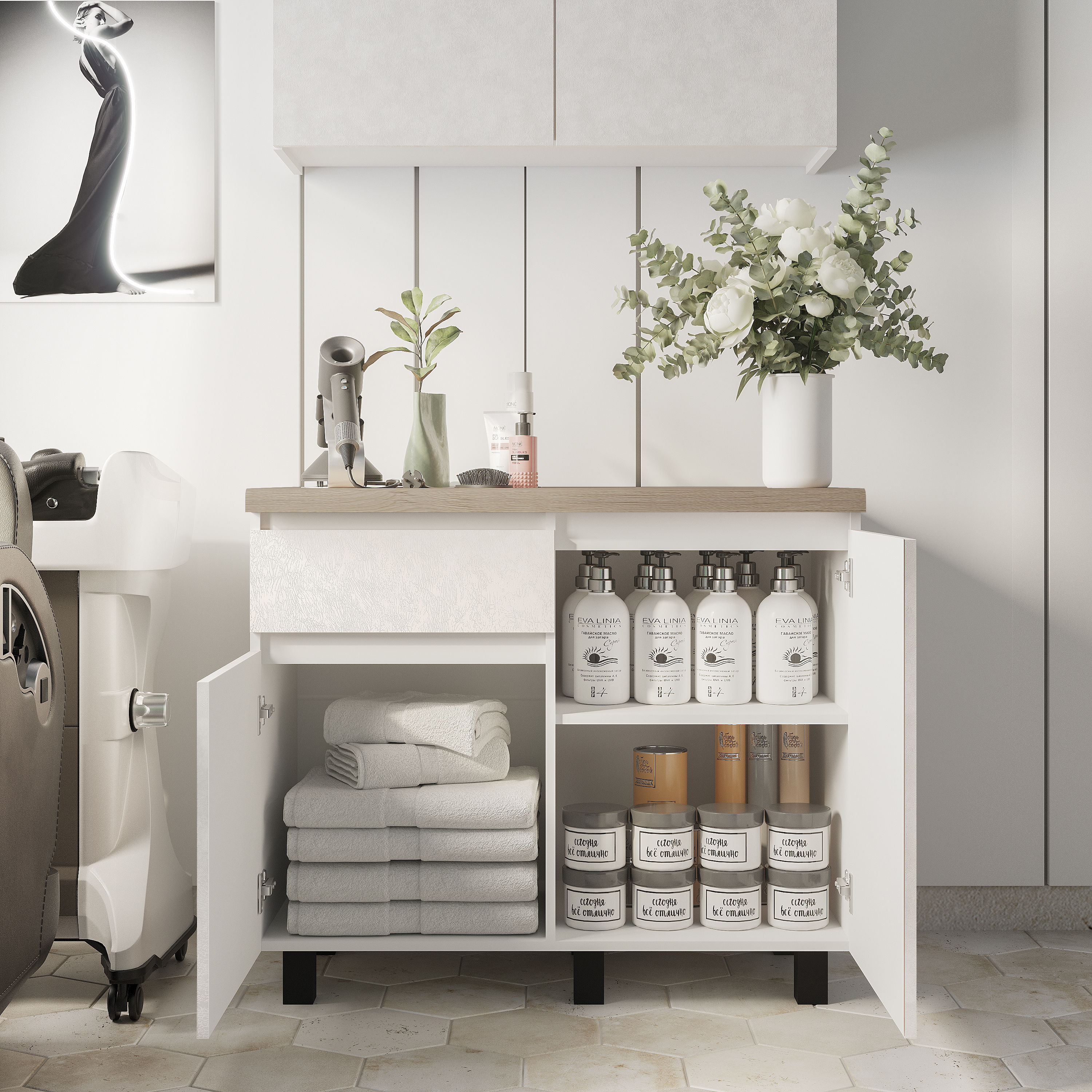 Габаритные размеры низ: ширина -1002 мм, высота - 858 мм, глубина - 595 мм; верх: ширина - 1000 мм, высота - 720 мм, глубина - 304 мм.