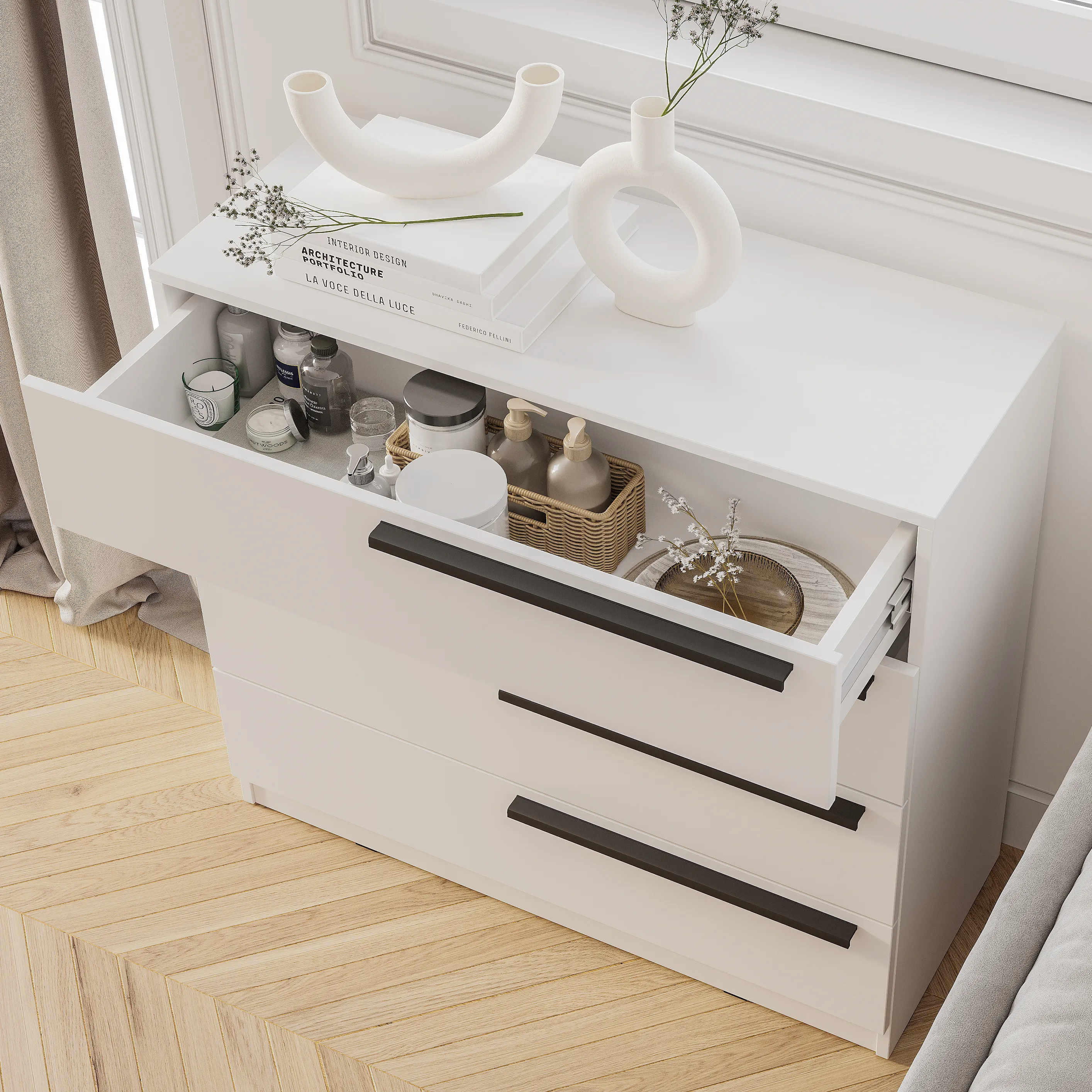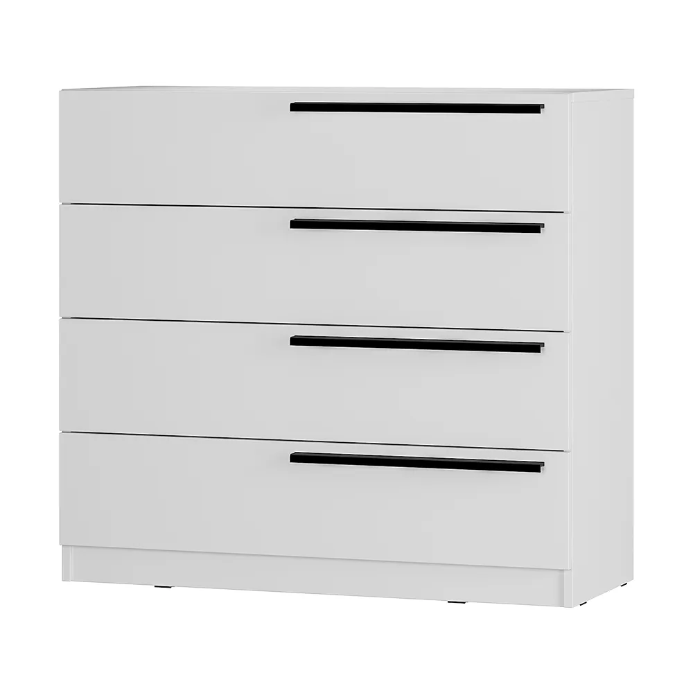 Комод «Айрон» — вместительный комод с четырьмя вместительными ящиками — универсальное решение, которое подойдёт и для спальни, и для домашнего кабинета, и для гостиной. Эргономичные черные ручки контрастного оттенка делают эту модель более изящной. Комод идеально подходит для хранения белья, одежды, аксессуаров, важных документов, украшений и мелочей. Верхнюю крышку можно использовать как дополнительную полочку для лампы.