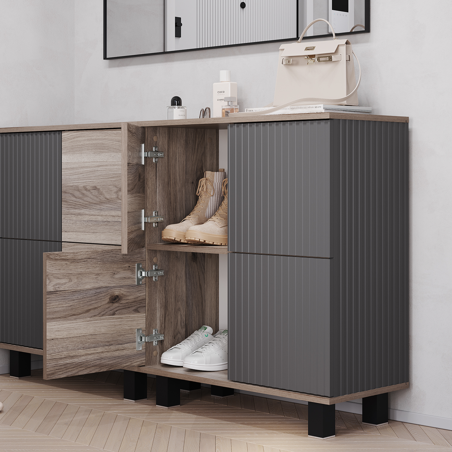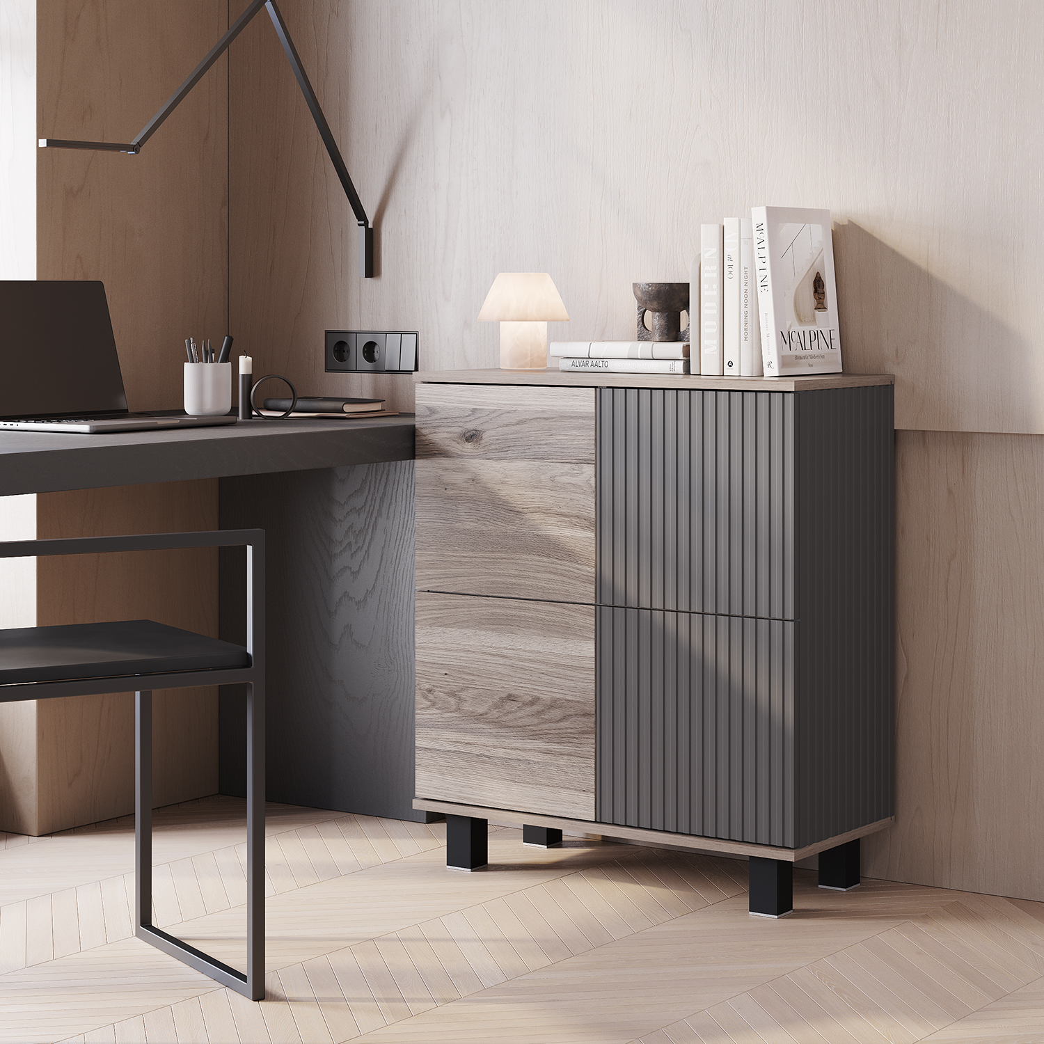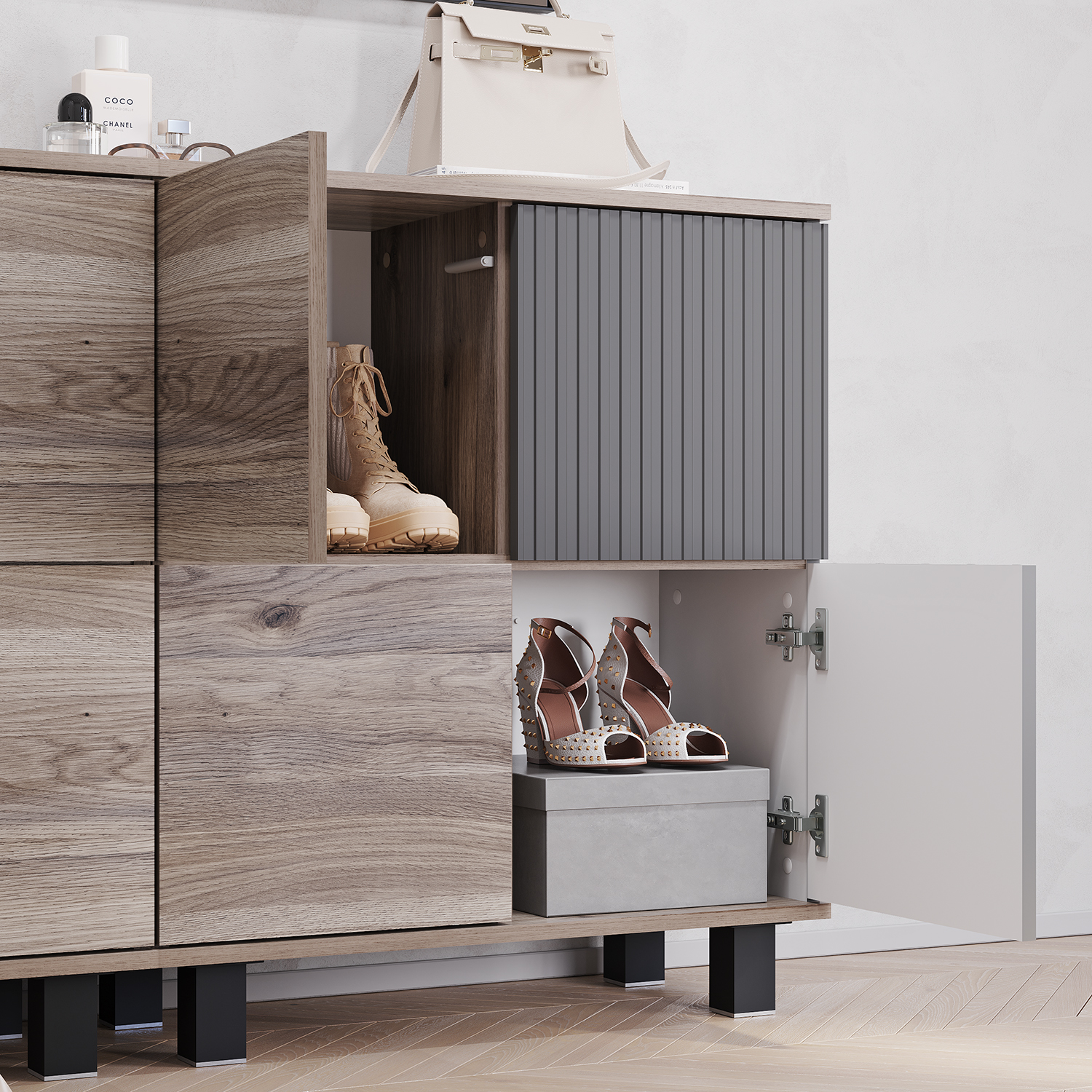 Стильный дизайн с фрезеровкой дополняет интерьеры в стиле лофт и модерн. Каждая дверца оборудована системой push to open, что гарантирует легкость открывания.