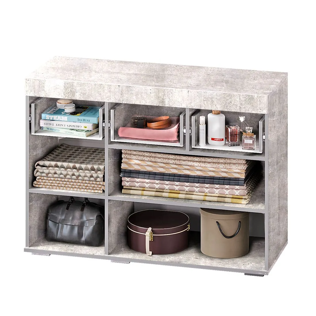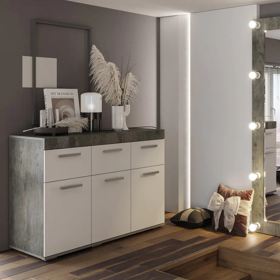 Светлые матовые фасады, стильный корпус в цвете "бетон", лаконичные хромированные ручки – все это про модель комода "Инстайл" из одноимённой мебельной коллекции. Размеры комода позволяют разместить в нем большое количество вещей. В верхних выдвижных ящиках можно хранить украшения или аксессуары.