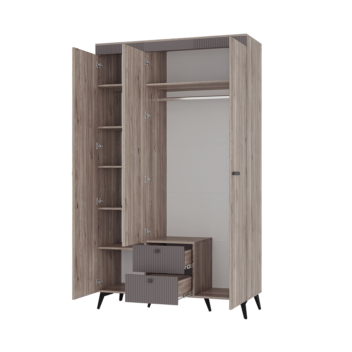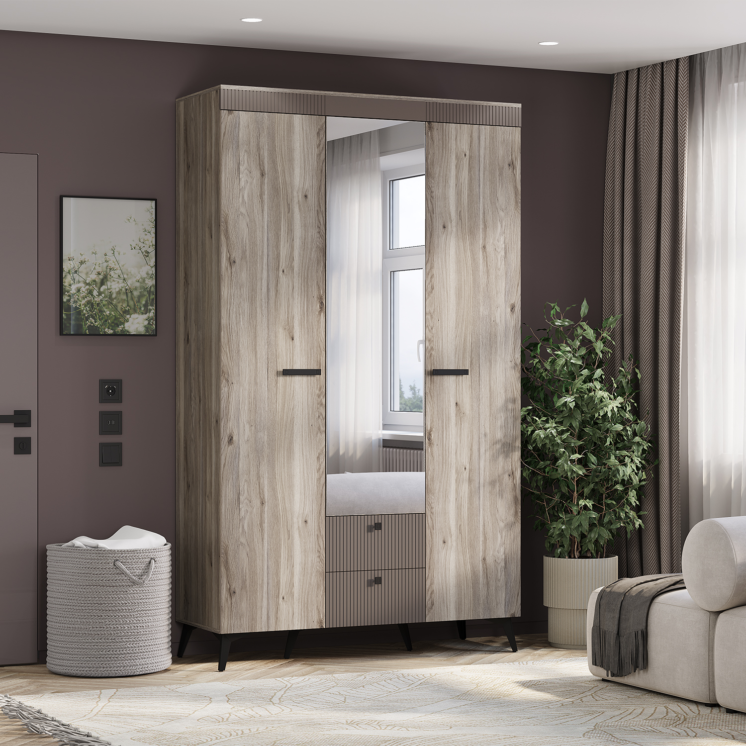 Вместительный трехстворчатый шкаф «Кассандра» позволит организовать грамотное хранение одежды. В данной модели предусмотрены зоны для всего гардероба: вертикальное пространство со штангой, просторные полки и блок с ящиками для белья.