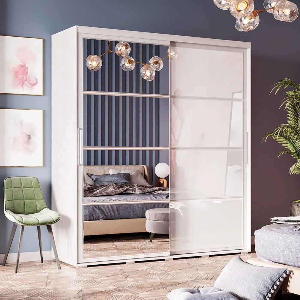 Шкаф-купе "Крафт-6" ШКК-06 вписывается даже в небольшое пространство комнаты благодаря оптимальным габаритам. Практичный и многофункциональный шкаф-купе "Крафт-6" подойдет для любой комнаты вашей квартиры или дома. Модель изготовлена из ЛДСП; одна раздвижная створка выполнена из стекла с лакобелью, а вторая – зеркальная, такой прием облегчает конструкцию и позволяет расширить пространство. Внутри шкаф состоит из многочисленных полок и ящиков для белья и одежды, а также отделения со штангой для плечиков.