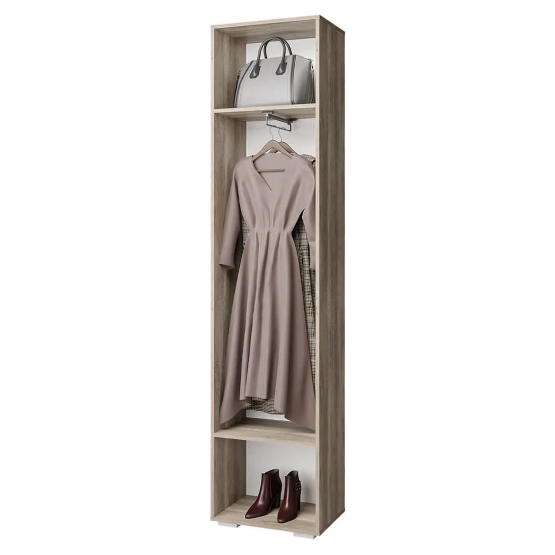 Стильный одностворчатый шкаф "Наоми" - прекрасное дополнение современного интерьера. Распашная дверка выполнена из МДФ цвета "графит", ручка интегрирована в фасад. Данная модель состоит из выдвижной хромированной штанги для одежды на плечиках и двух вместительных полок.