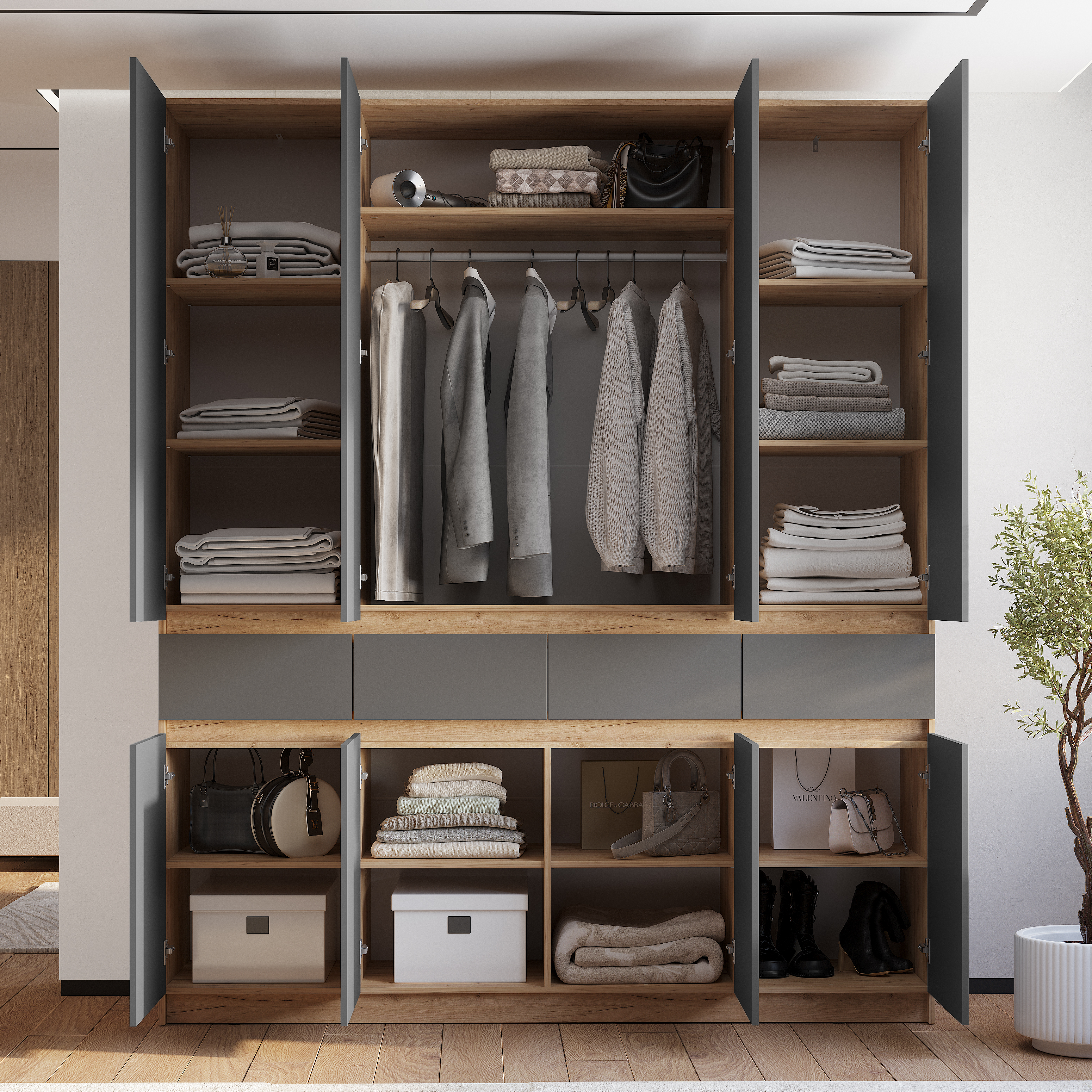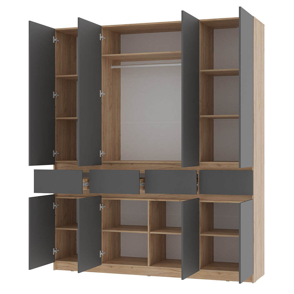 Шкаф 4-х створчатый "Багира" ШК-13 - это стиль, универсальность и вместительность. Хромированная штанга для аккуратного вертикального хранения одежды.