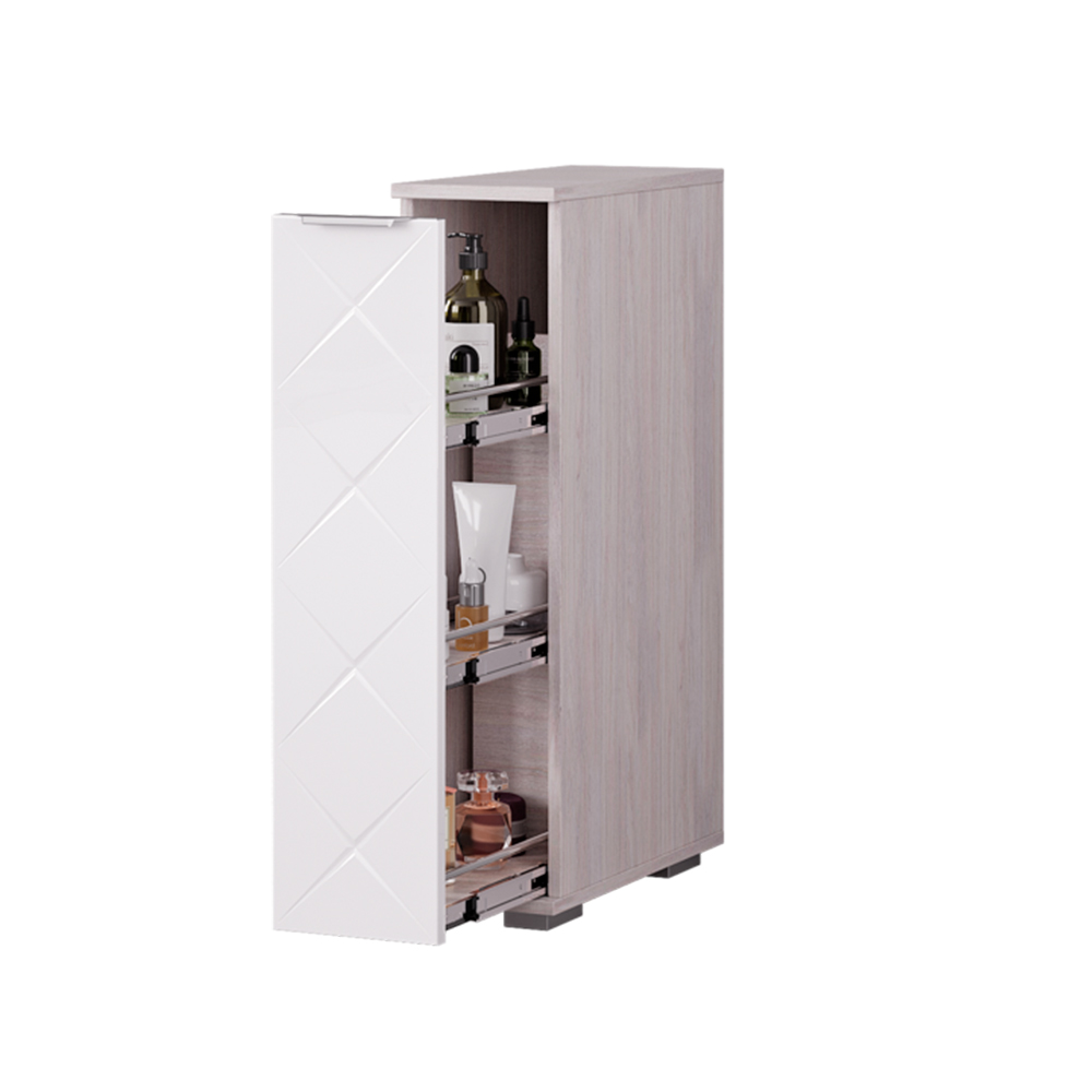 Тумба "Кимберли" – красивый и функциональный предмет интерьера. Она оснащена выдвижной нишей, в которой можно хранить косметику, средства по уходу за собой или другие необходимые вещи. Фасад изделия выполнен в белом глянце и имеет стильную гравировку.