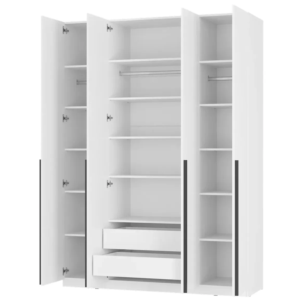 Четырехстворчатый шкаф "Айрон" - отличный выбор для тех, кто ищет вместительную и стильную модель. "Айрон" объединяет в себе последние тенденции в дизайне мебели и функциональность.