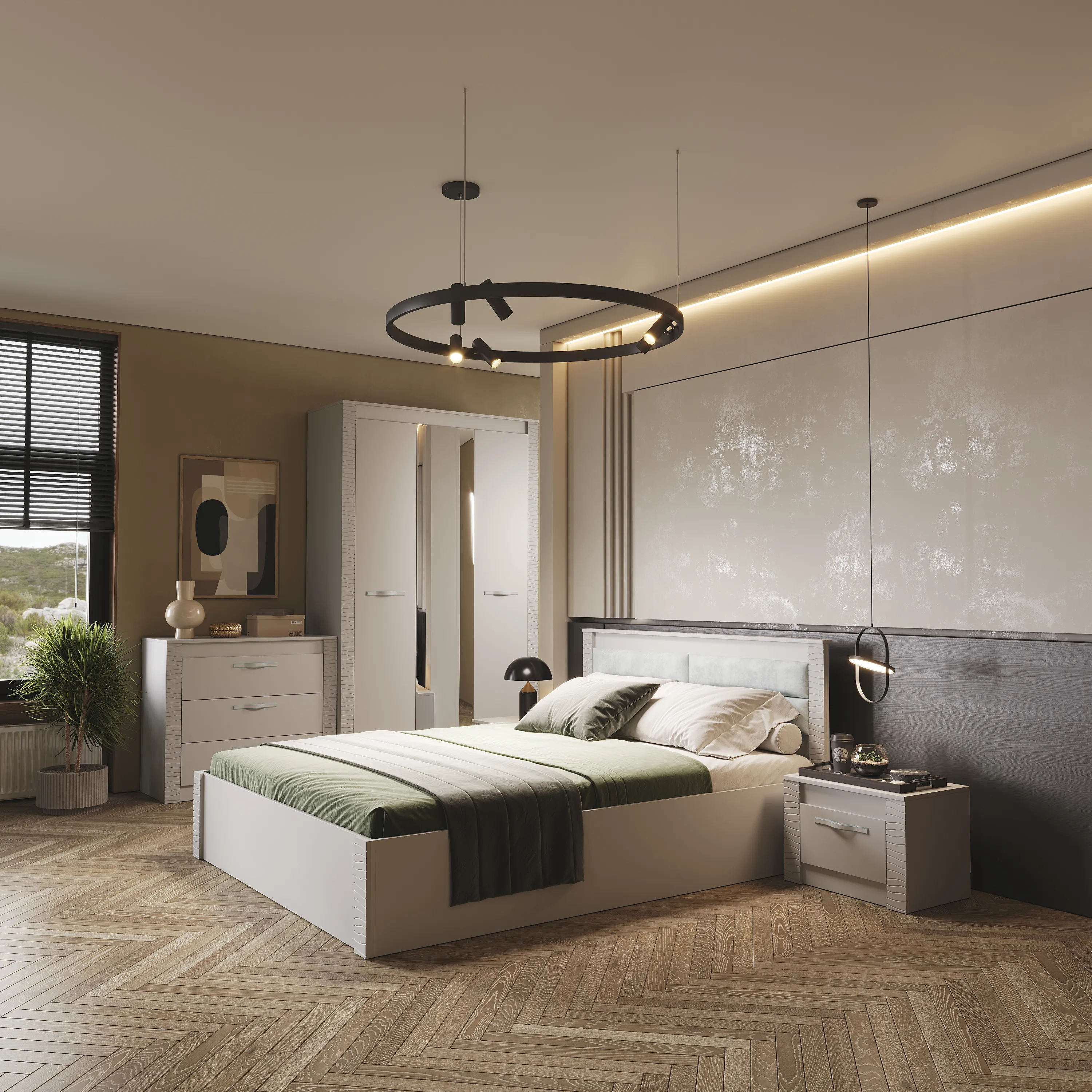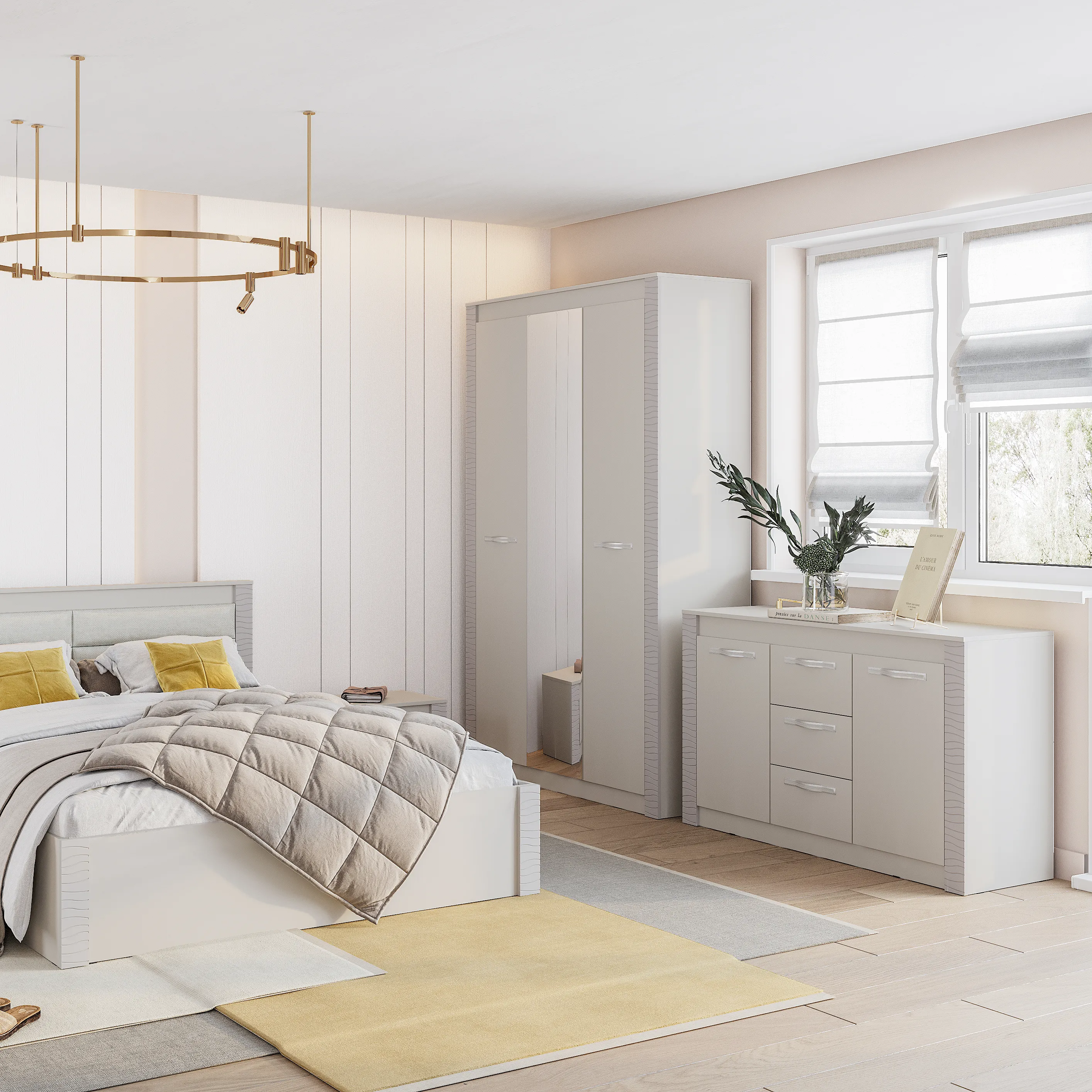Модульная коллекция «Монако» - это универсальное решение с эргономичным дизайном и функциональностью для современного дома. Фрезеровка с волнообразными узорами на фасадах привлекает внимание. Интерьеры с белыми декорами в 2024 году заменяются на нюдовые тона. Трендовый оттенок «кашемир» позволяет использовать в интерьере теплые и холодные декоры, а также различные варианты цветового решения домашнего текстиля, аксессуаров и других элементов. Мягкий приглушённый оттенок «кашемир» является изысканным выбором для стильного дома и придаёт нотку нежности и уюта.